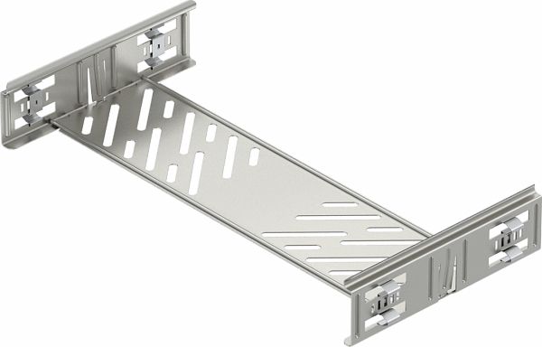 Kabelrinne mit integriertem Schnellbefestigungssystem. Die Nutzlänge der Kabelrinne beträgt 3.000 mm. Die Kabelrinne verfügt über eine durchgängige Seitenlochung von 7 x 20 mm für die Installation zusätzlicher Verbindungs- und Montagebauteile. Ab Kabelrinnenbreite 200 mm mit 30% Lochanteil, nach VdS Richtlinie 2092 zum Einsatz unter Sprinkleranlagen geeignet.