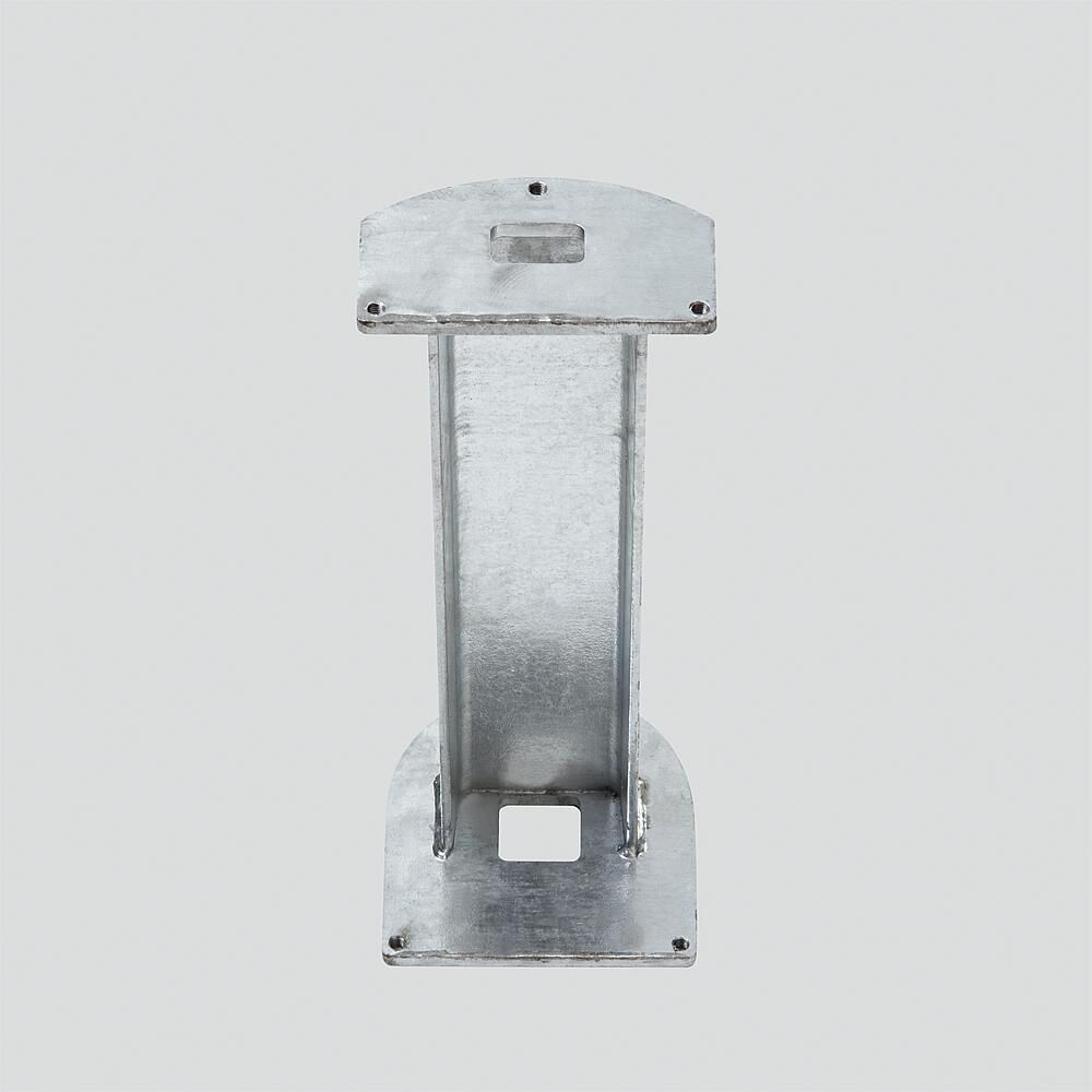 Kommunikations-Stele freistehend aus Aluminium-Strangpressprofil, pulverbeschichtet bzw. lackiert, mit Bodenflansch. Inklusive Montagerahmen, zur Aufnahme von 3 Funktionsmodulen.