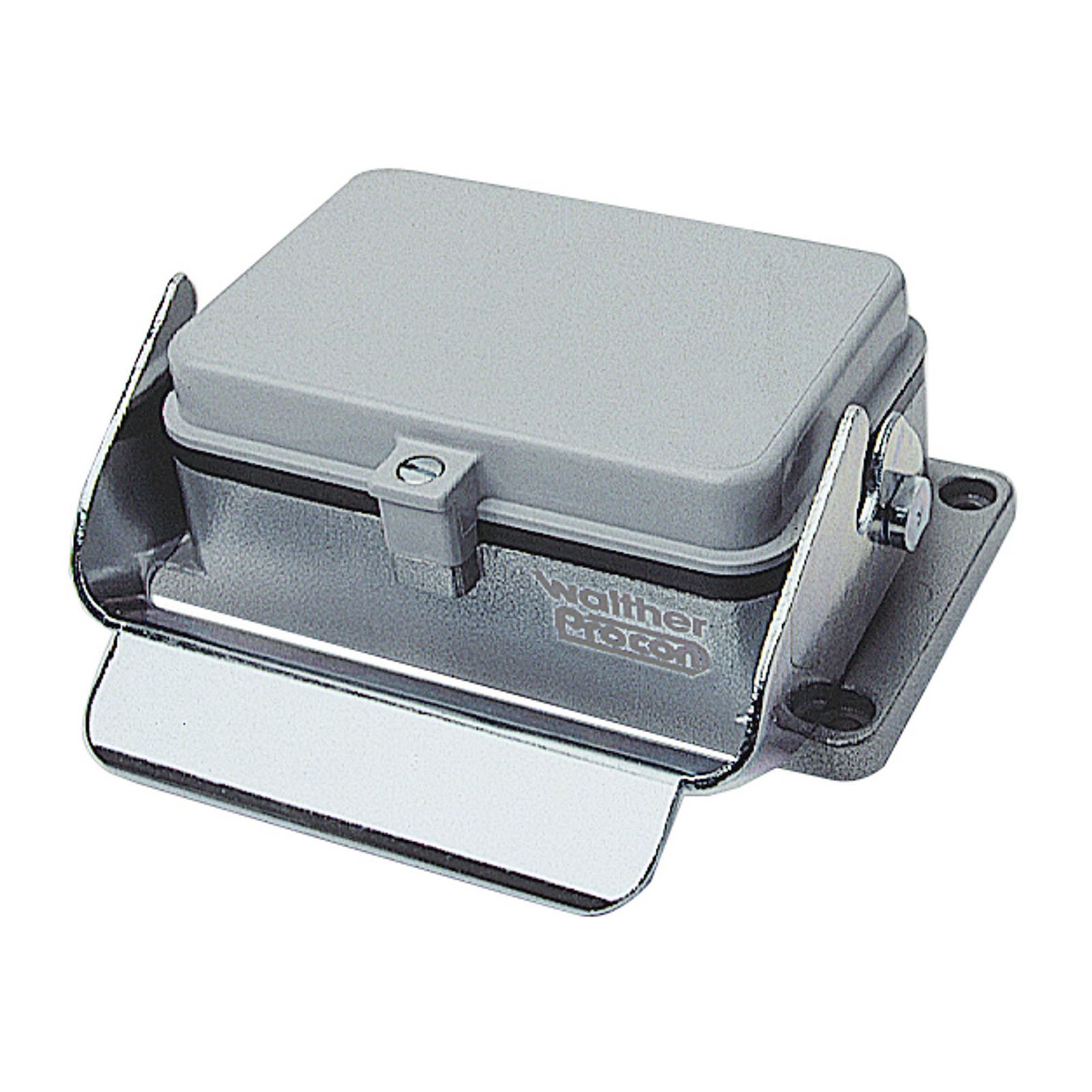 WALTHER Anbaugehäuse Zink-Druckguss Gehäuse der Höhe 24mm gerade mit Längsverriegelungsbügel aus verzinktem Stahl und Aluminium-Klappdeckel Schutzart: IP65 für die Baureihen A3,A4, A5 und D8 Montageausschnitt 21x21mm