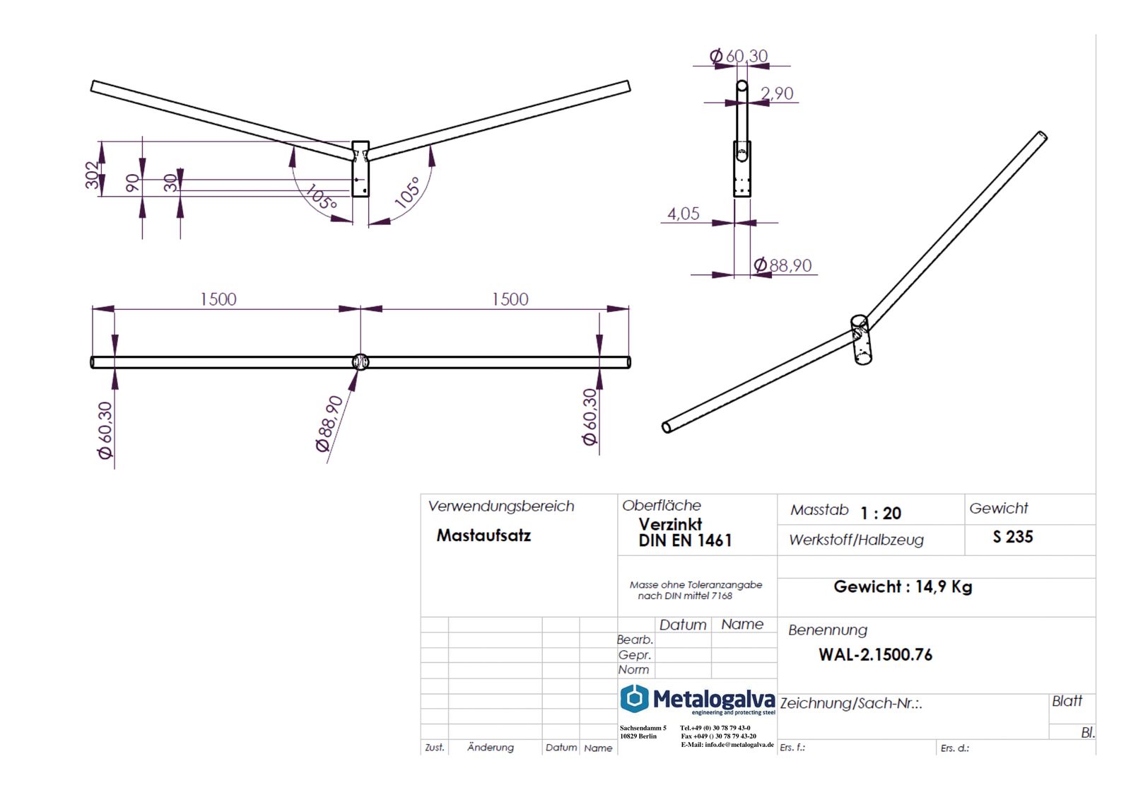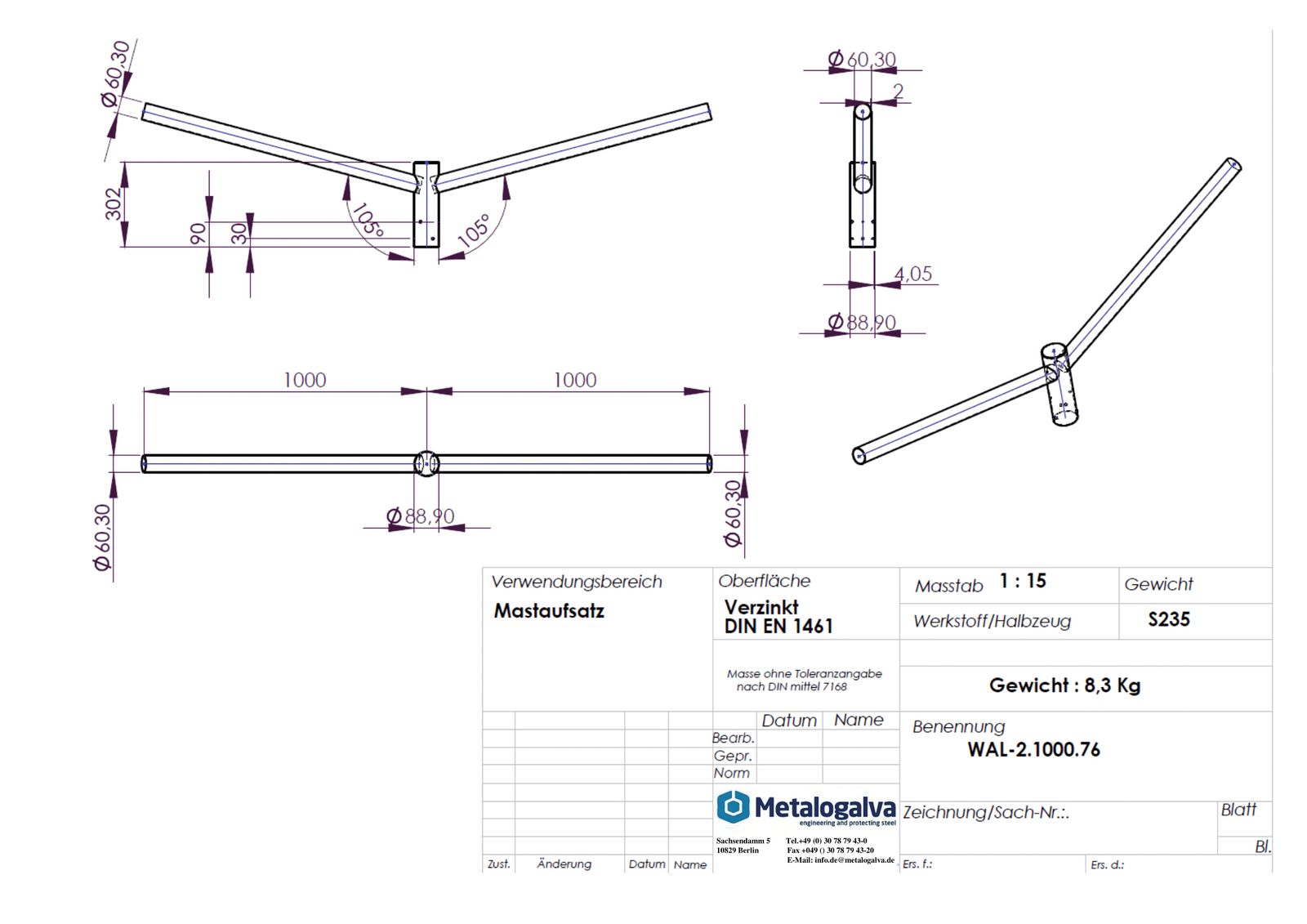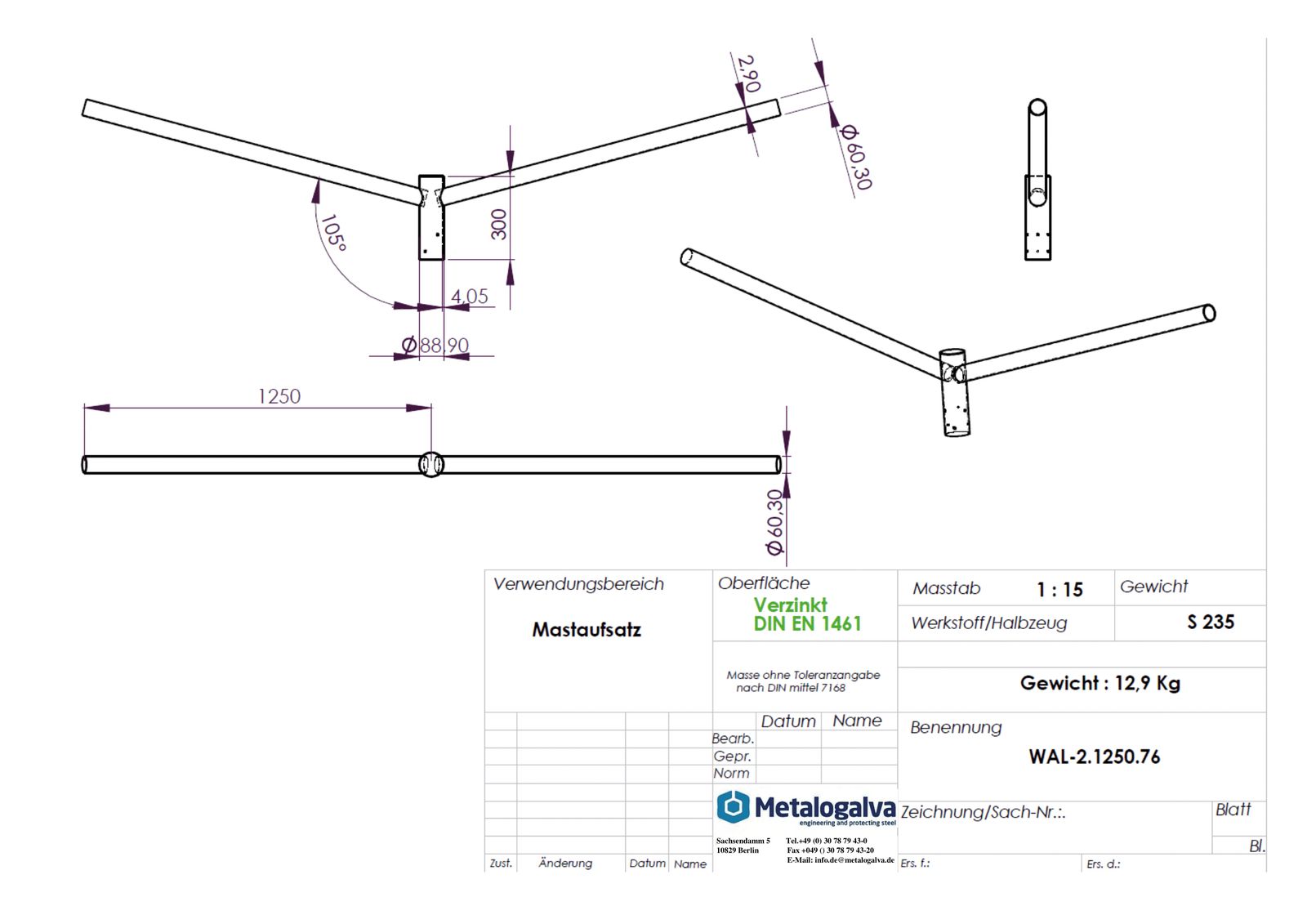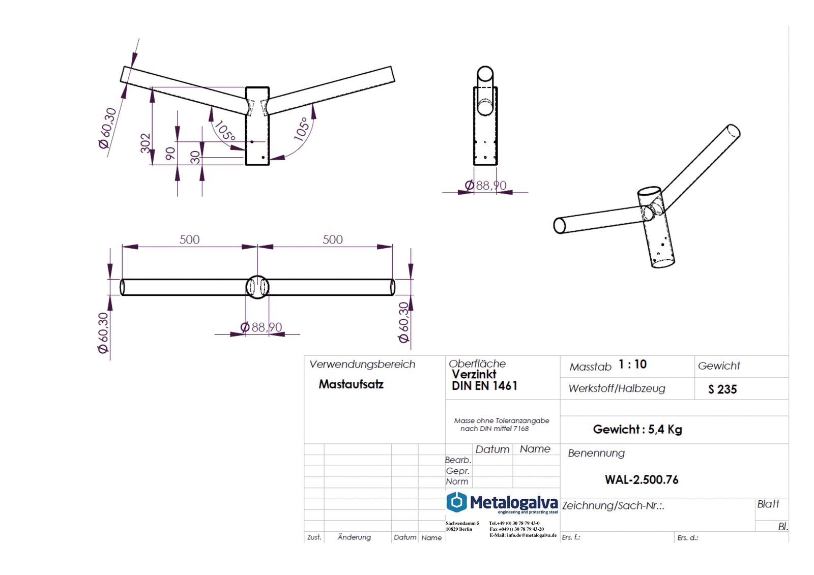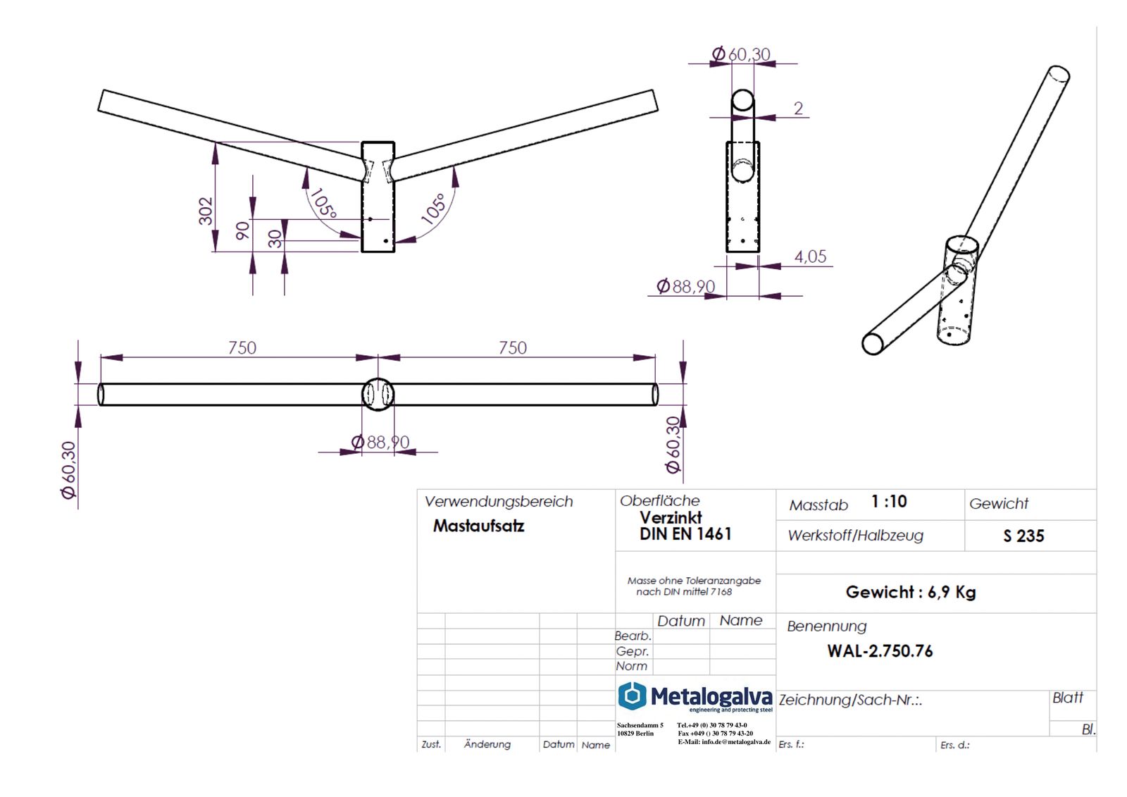 Metalogalva Ausleger 76mm 60mm 2f ST Zubehör