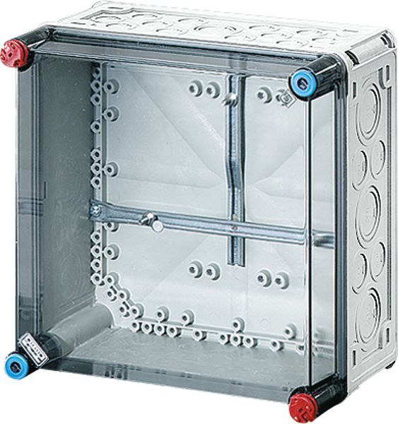 Gehäuse für den Bau von Energie-Schaltgerätekombinationen bis 630 A oder als Einzelgehäuse. Aus hochwertigem Polycarbonat schutzisoliert. Wanddurchführungen mit großen Öffnungen für die elektrische Verbindung der Gehäuse untereinander. Kabeleinführung an allen Gehäusewänden über metrische Vorprägungen oder Anbauflansche. Gehäuse zur Wandbefestigung auch über Außenlaschen oder mit Montageschienen. Automatengehäuse mit 12 Teilungseinheiten zum Einbau von Reiheneinbaugeräten nach DIN 43880. Ohne PE- und N-Klemmen. Mit Abdeckstreifen zum Verschließen von nicht benutzten Geräteausschnitten und Beschriftungsstreifen für die Stromkreiskennzeichnung. Transparenter Deckel, Deckelverschlüsse für Handbetätigung.