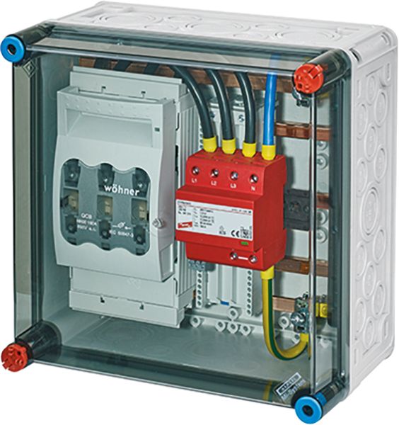 Gehäuse für den Bau von Energie-Schaltgerätekombinationen bis 630 A oder als Einzelgehäuse. Aus hochwertigem Polycarbonat schutzisoliert. Wanddurchführungen mit großen Öffnungen für die elektrische Verbindung der Gehäuse untereinander. Kabeleinführung an allen Gehäusewänden über metrische Vorprägungen oder Anbauflansche. Gehäuse zur Wandbefestigung auch über Außenlaschen oder mit Montageschienen. Automatengehäuse mit 84 Teilungseinheiten zum Einbau von Reiheneinbaugeräten nach DIN 43880. Ohne PE- und N-Klemmen. Mit Abdeckstreifen zum Verschließen von nicht benutzten Geräteausschnitten und Beschriftungsstreifen für die Stromkreiskennzeichnung. Transparenter Deckel, Deckelverschlüsse für Handbetätigung. Mit herausnehmbarem Traggerüst und Erdungsanschluss. Kabeleinführung nur über Anbauflansche möglich.