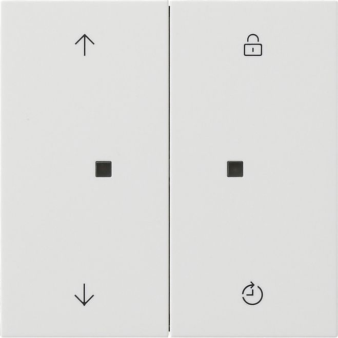 System 3000 Bedienaufsatz Memory Pfeilsymbole Reinweiß glänzend System 55 Merkmale: Speichern einer Herauf- und Herunterfahrzeit bzw. einer Ein- und Ausschaltzeit. Im Memorybetrieb werden diese Schaltzeiten im 24-Stunden-Rhythmus wiederholt. Sperrfunktion sperrt die Nebenstellenbedienung und deaktiviert den Memorybetrieb. Nachtmodus einstellbar. Status- und Funktions-LED leuchten nicht dauerhaft. Hinweise: Lieferumfang: