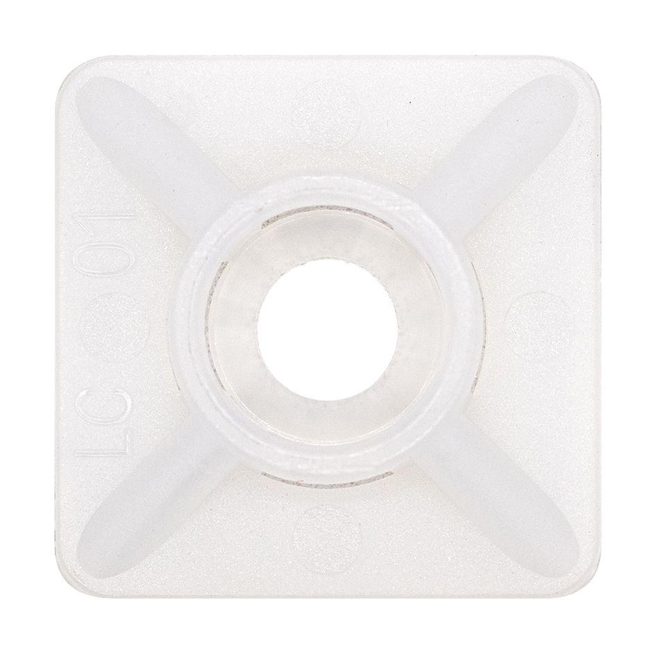 Befestigungssockel für Kabelbinder, Kunststoff, natur, Befestigungsart: selbstklebend und für Schrauben-Ø 5 mm, Brennbarkeitsklasse UL 94 V-2, Einsatztemperatur: -40°C bis +85°C.