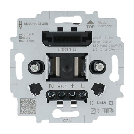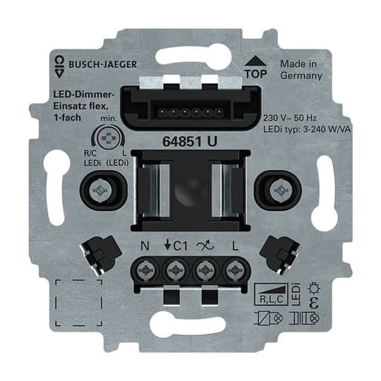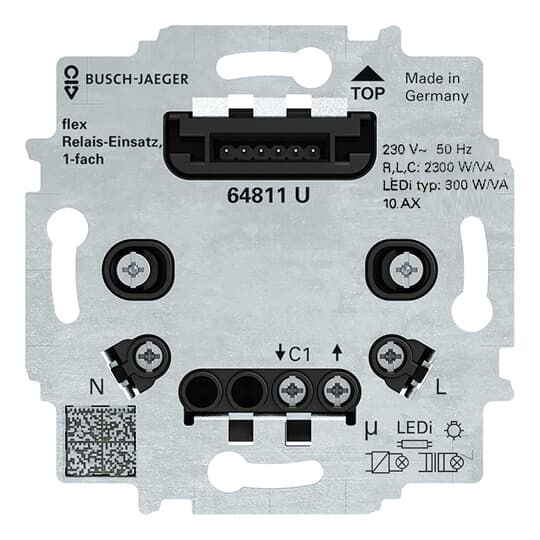 Bewegungsmelder-Tastschalter-Kombination. Zum helligkeits- und bewegungsabhängigen Schalten von Beleuchtungen. Funktion Tastschalter jederzeit möglich. Erfassung mit Tierschneise. Mit Hinweis-LED wenn eine manuelle Bedienung erforderlich ist. Kompatibel zu allen flex-Einsätzen. Einstellelemente rückseitig. 2 Regler zur Einstellung von Helligkeitsschaltschwelle und Nachlaufzeit. Erweiterung des Erfassungsbereiches durch Hauptstellen-/Nebenstellen Kombinationen. Zusätzliche Ein-/Ausschaltmöglichkeit über Tastereingang am Unterputz-Einsatz. Einstellbare Betriebsart: Automatikbetrieb, automatisches (bewegungsgesteuertes) Ein- und Ausschalten. Einstellbare Betriebsart: Halbautomatik, manuelles Einschalten, automatisches (zeit - und bewegungsgesteuertes) Ausschalten. Einstellbare Betriebsart: Einschaltautomatik, automatisches Einschalten, manuelles Ausschalten. Mit Dauerlicht- / Dauer-Aus-Funktion. Überwachungsdichte: 9 Sektoren mit 28 Schaltsegmenten. Ausschaltverzögerung: ca. 1 Min. - 10 Min. einstellbar. Für Relais-Einsatz flex, 1-fach, 64811 U. Für e-contact-Einsatz flex, 1-fach, 64814 U. Für Relais-Einsatz flex, 2-fach, 64821 U. Für LED-Tastdimmer-Einsatz flex, 1-fach, 64851 U. Für Nebenstelleneinsatz flex, 64891 U. Aufbauhöhe: 21 mm. Den entsprechenden UP-Einsatz bitte separat bestellen. Die Reichweitenangaben beziehen sich auf eine Umgebungstemperatur von 21 °C. Designlinie: Busch-Duro 2000 SI Designlinie Variante: Busch-Duro 2000 SI, Busch-Duro 2000 SI Linear