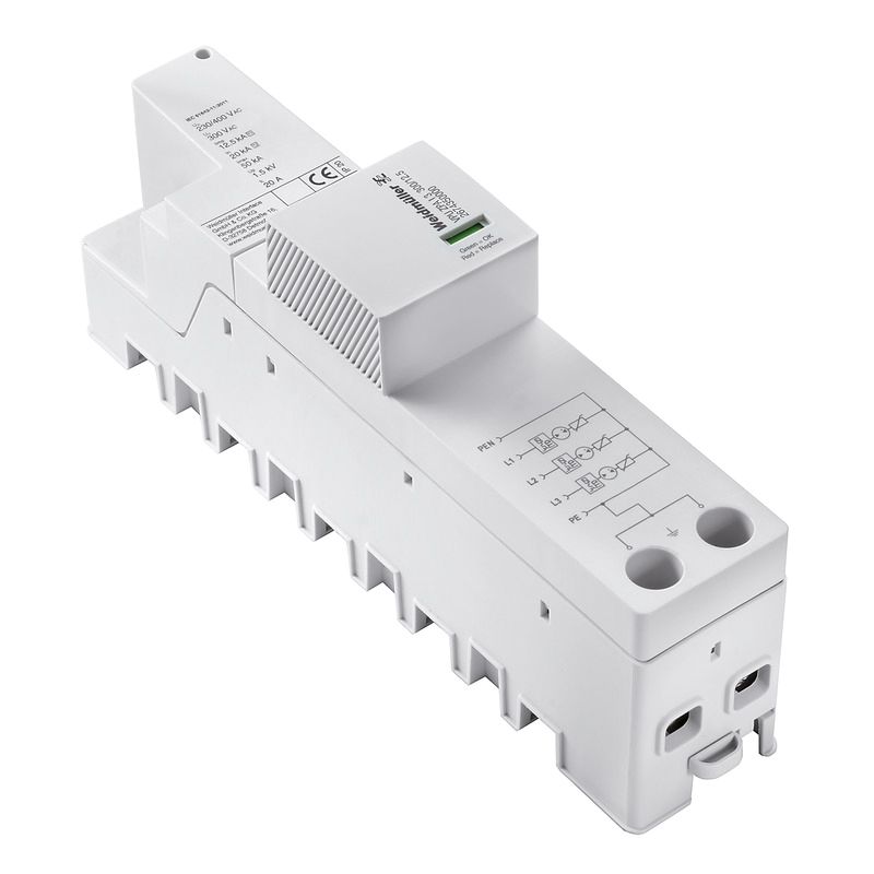 Gerät für den Überspannungsschutz in Energietechnik und Stromversorgung. Das Gerät sollte nahe der Einspeisung der zu schützenden Anlage installiert werden.