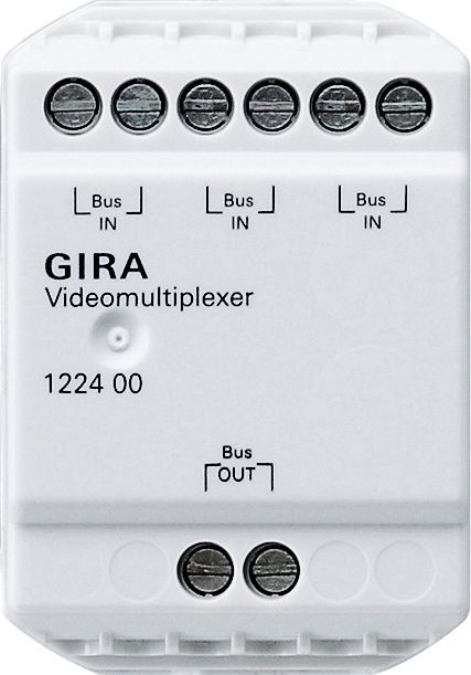 TKS-Kamera-Gateway - Das TKS-Kamera-Gateway bindet eine handelsübliche analoge Kamera in das Gira Türkommunikationssystem ein. - Die Kamera kann einer Türstation zugeordnet werden. In diesem Fall schaltet sich die externe Kamera bei Betätigung der Ruftaste automatisch ein. Durch das Kombigehäuse des TKS-Kamera-Gateways sind drei Montagearten möglich: - Aufputz (in einer handelsüblichen Abzweigdose). - Unterputz (in eine Gerätedose). - als REG (mit dem beiliegenden REG-Adapter) Bei mehreren externen Kameras wird für jede externe Kamera jeweils ein TKS-Kamera-Gateway und eine eigene Spannnungsversorgung benötigt. In einer Anlage dürfen bis zu zehn TKS-Kamera-Gateways eingesetzt werden, wobei das Videosignal max. drei TKS-Kamera-Gateways durchlaufen darf. Der Anschluss der externen Kamera erfolgt über Schraubklemmen. Für Kameras