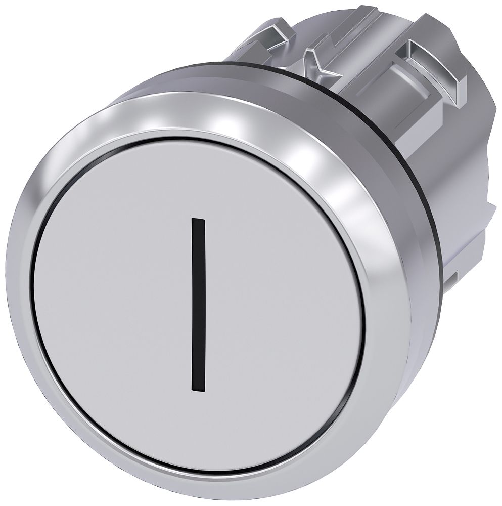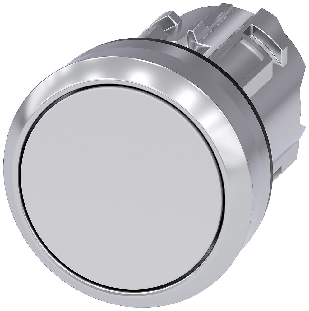 Drucktaster, 22 mm, rund, Metall, hochglanz, rot, Druckknopf, flach tastend Drucktaster SIRIUS ACT zur Schaltung und Steuerung elektrischer Verbraucher. Unter dem Markennamen SIRIUS ACT bietet Siemens ein einzigartiges Portfolio an Befehls- und Meldegeräten mit weltweiten Produkt-Zulassungen in drei modernen Designreihen aus robustem Echtmetall und hochwertigem Kunststoff. Das innovative Aufschnappkonzept vereinfacht die Montage so weit, dass dafür nur eine Hand und kein Spezialwerkzeug erforderlich ist. Als Montagebohrungen genügen nutfreie Löcher, da bereits ein 100%iger Verdrehschutz integriert ist. Dank der durchgängig hohen Schutzart sind die robusten Geräte industrietauglich und für den Außeneinsatz geeignet. Sogar die Reinigung mit Hochdruckstrahl ist möglich. Weder Staub, Öle noch aggressive Laugen können den zuverlässigen Betrieb stören. Neben der Standardverdrahtung können die meisten Geräte auch über PROFINET, AS-Interface oder IO-Link an die Steuerung angebunden werden. Damit reduzieren Sie Ihren Verdrahtungsaufwand, minimieren Fehlerquellen und gewinnen mehr Flexibilität. Komfortabel unterstützt der grafische Online-Konfigurator bei Auswahl und Bestellung von Einzelgeräten, Gehäusen und Beschriftungen. Umfangreiche Dokumentation (z.B. Handbuch, 3D-Daten, Anschlussdiagramm) ist verfügbar. Lieferbare Ausführungen: mehrere Farben, beleuchtet/unbeleuchtet, mit/ohne Beschriftung, verrastende/tastende Betätigung, verschiedene Druckknopf- und Frontringhöhen. Hinweis: Einzelgerät, Halter und Module bitte extra bestellen. SIRIUS ACT - Performance in Action beim Befehlen und Melden. Einfach montiert,