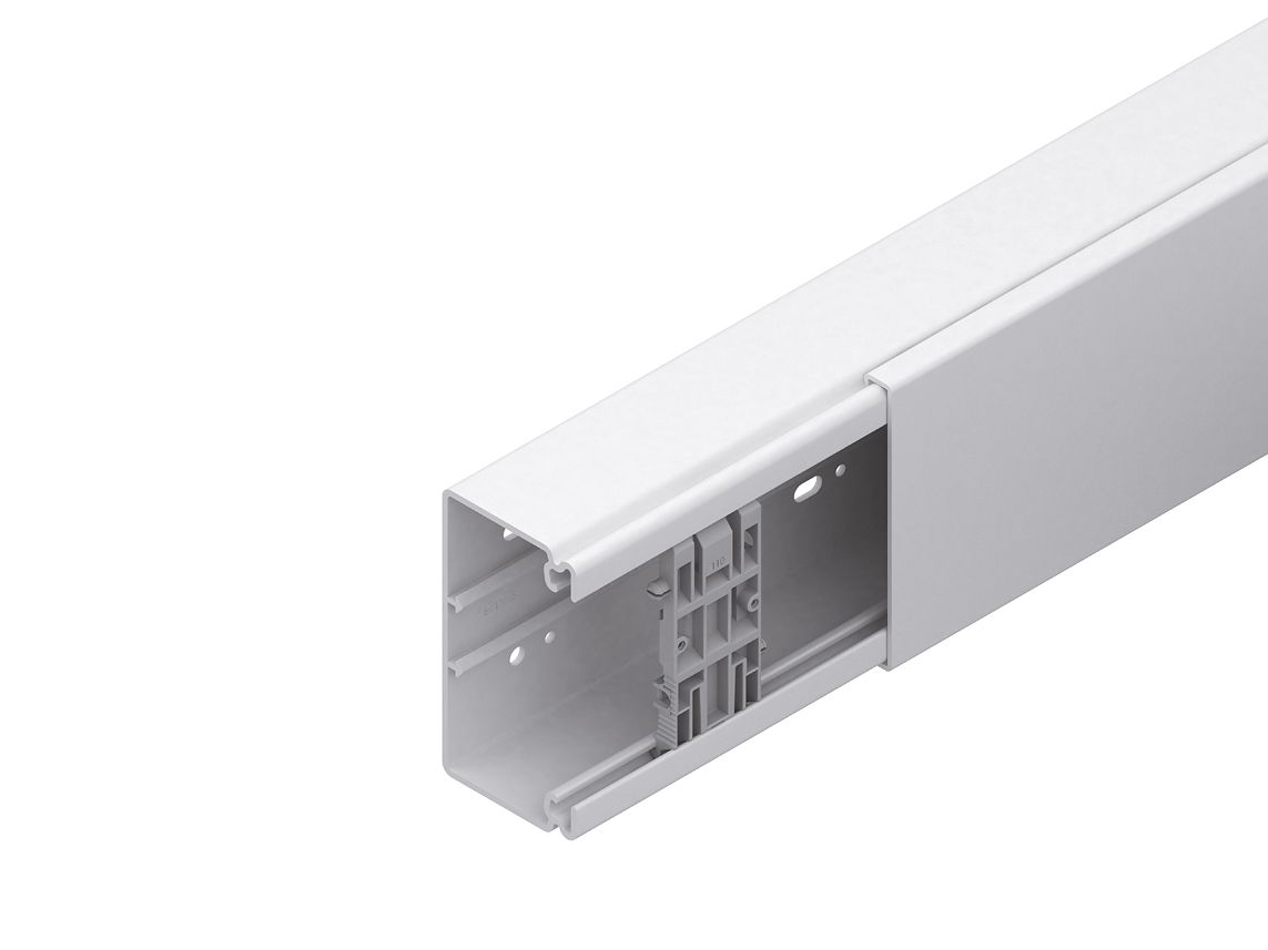 Endstück, einschließlich Befestigungselement 679. für Elektroinstallationskanal:HKL60190.3 Abmessungen (ca. Maße) H x B:60 x 190 mm Werkstoff:ASA (Acrylsäureester-Styrol-Acrylnitril-Pfropfcopolymer) Farbton:reinweiß RAL:9010 (ähnlich)