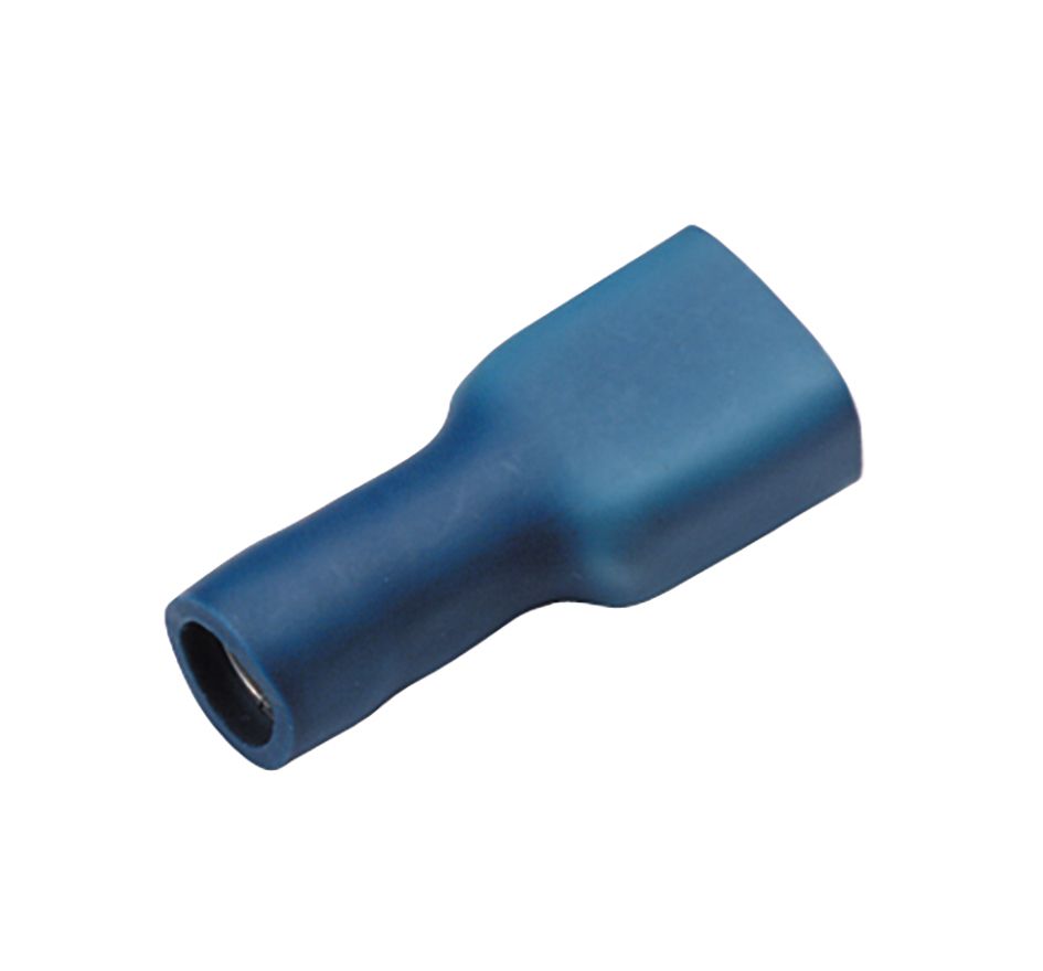 Für fein- und feinstdrähtige Leiter. Isoliert, halogenfrei. Querschnittabhängige Farbkodierung. 6,3x0,8 mm, 1,5-2,5 mm². Temperaturbeständigkeit bis 70° C. Verzinnt. Werkstoff CuZn (Messing). Isolierhülse: PVC.