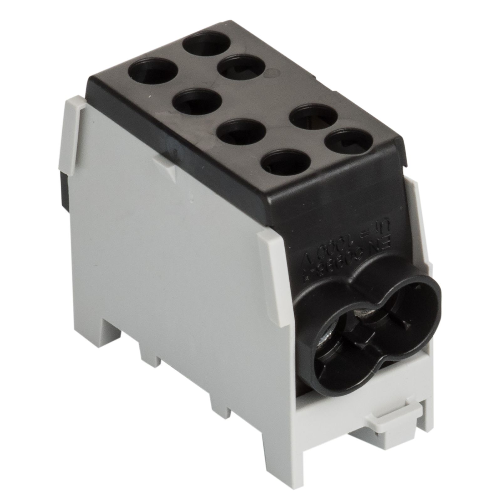 Hauptleitungsklemme, Minimodular anreihbar, leiterfarbenkonform, PV-geeignet. Zur Montage auf Tragschiene 35 mm gem. EN 60715, für Kleinverteiler und Zählerplätze AC 400 V gem. VDE 0603. Buchsenklemme mit je 2 Schrauben pro Klemmstelle, Schrauben mit Kombischlitz-Pozidriv Z2. Aufbau: Klemmkörper: Messing verzinnt: Klemmschrauben: Stahl, verzinkt: Isoliergehäuse: Kunststoff (Polyamid) schlagzäh, flammgeschützt, halogenfrei, für Aluminiumleiter (eindrähtig) geeignet. Die angegebenen Querschnitte beziehen sich auf ein oder mehrdrähtige Leiter. Für feindrähtige Leiter mit Aderendhülsen ist der nächstkleinere Querschnitt zu wählen.