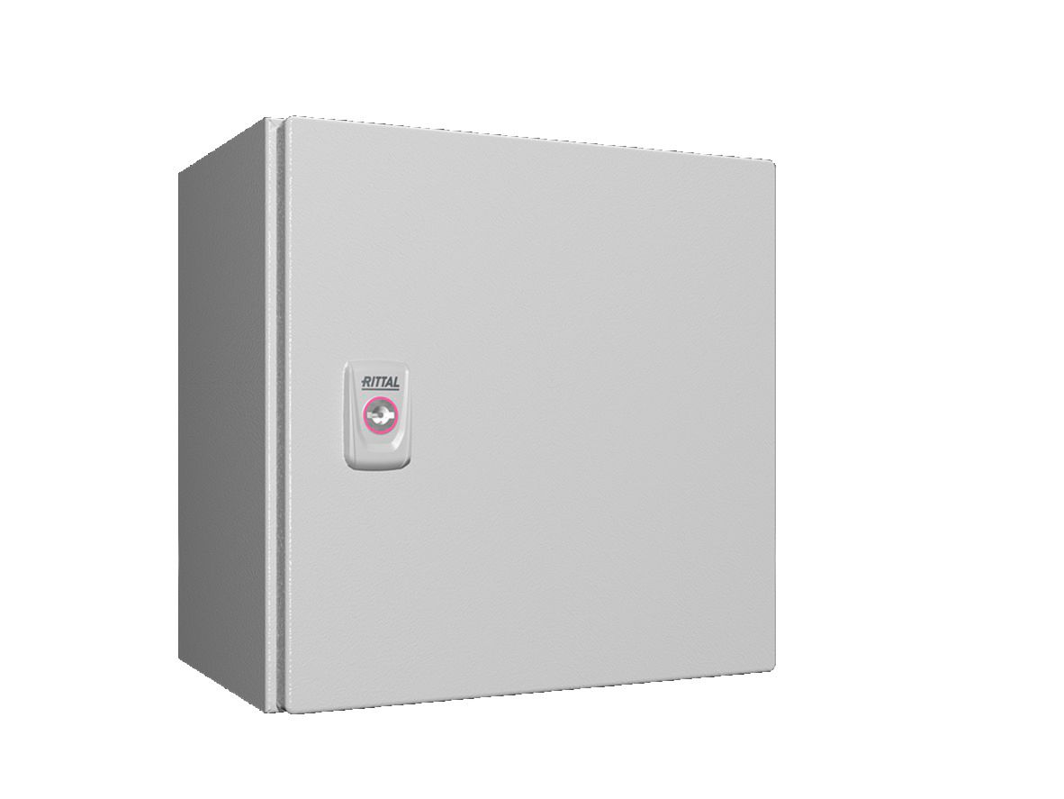 Not-Aus/Hauptschalter, 3P, 690V, 63A, Im Gehäuse. Baugroesse_A 80 A, Befestigung 4 Schrauben, Frontschild 60 x 60 mm. Komplettgerät, 3-polig, IP 65, mit Drehantrieb. Für Befestigung in der Schaltschranktür. Roter Griff, abschließbar mit 3 Vorhängeschlössern DM 4 mm bis DM 8 mm (Lieferung Ohne Vorhängeschlösser). Schalterstellung O I, Frontschild gelb.
