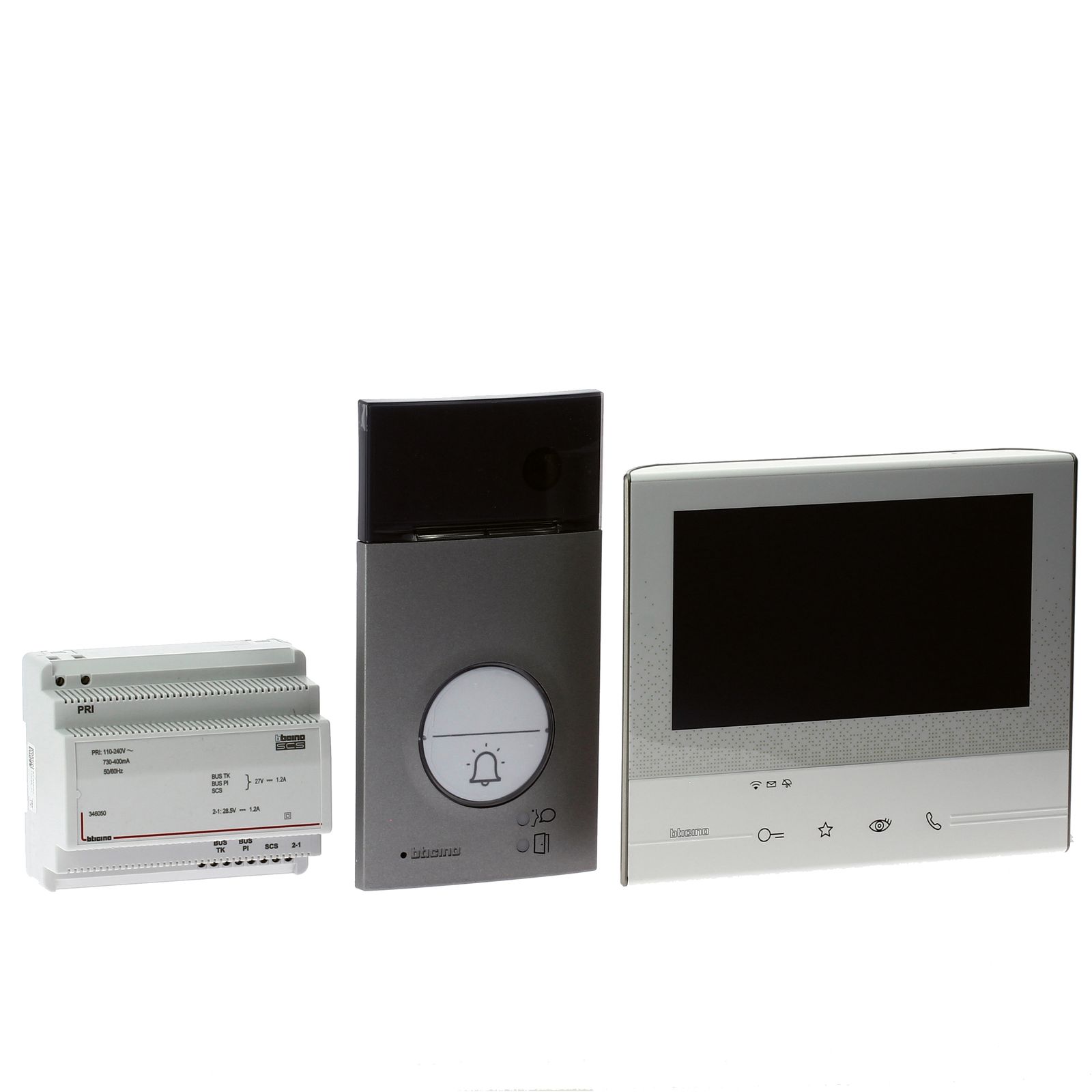 CLASSE 300 X13E VIDEO-HAUSSTATION MIT SMARTPHONE-ANBINDUNG Hörerlose Farbvideo-Hausstation in 2-Draht-Technik mit 7“ (17,8 cm, 16:9) LCD-Touchscreen, integrierter Induktionsschleife für Hörgeräteträger, Anrufbeantworterfunktion mit Audio-/Videospeicher (Memory) und integrierter WLAN-Schnittstelle zur Anbindung an bis zu 10 Smartphones. Über die entsprechende App kann die komplette Funktionalität der Hausstation (Videobild, Gespräch, Türöffnen, zusätzliche Kameras, etc.) auf dem Smartphone wiedergegeben werden. Verfügt über insgesamt 4 zusätzliche Sensortasten für die Hauptfunktionen (Tür öffnen, Gespräch annehmen, Türstation ein-/ umschalten) bzw. eine frei konfi gurierbare undefinedFavoriten“-Taste zur Hinterlegung einer oft verwendeten Funktion, wie z. B. Treppenhauslicht, Intern Sprechen, zusätzliche Schaltfunktionen. Fühlbare Führungsleisten für schnelleren Zugriff auf die Sensortasten undefinedTüröffnen“ und undefinedGespräch annehmen“. Der Zugriff zu den Einstellungen (z. B. Lautstärke, Farbe/ Helligkeit des Bildschirms) und weiterführenden Funktionen erfolgt über den Touchscreen. 16 verschiedene Ruftöne zur Auswahl. NachrichtenFunktion: Informationen/Notizen für Mitbewohner können, über die Tastatur am Touchscreen oder mittels Stimmaufnahme, hinterlassen werden. Anrufbeantworter-Funktion: Ist diese bei Abwesenheit aktiviert, können Besucher über die Türstation eine Audionachricht hinterlassen. Zusätzlich wird ein Video des Besuchers gespeichert. LED-Anzeige für: Ruftonabschaltung, Verfügbarkeit einer Nachricht. Die Konfi guration kann physisch (durch Konfi guratoren) oder mittels Menü direkt am Touchscreen durchgeführt werden. Bei der Wandmontage (erfolgt mittels mitgelieferter Wandhalterung) wird, zur Unterbringung der Anschlusskabel, eine Standard-Installationsdose dringend empfohlen. Auch als Tischgerät mittels separat erhältlichem Zubehör (Art. 344632) verwendbar. Anschluss für BUS, Etagenruf und Zusatzläutewerk. Maße: B undefined H undefined T: 193,5 undefined 162 undefined 22 mm,