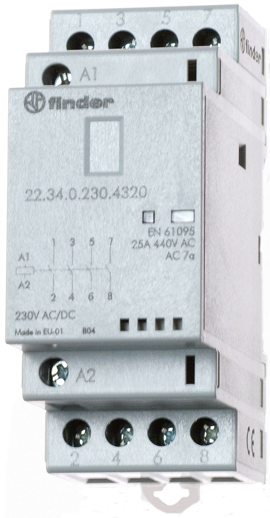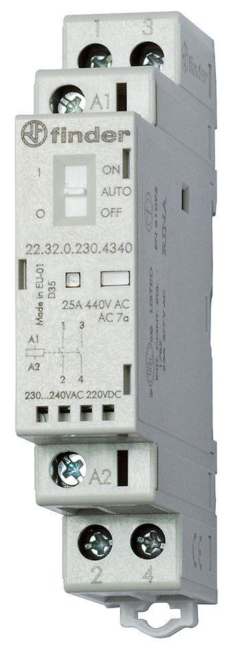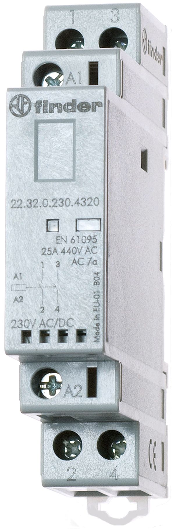 FINDER Installationsschütz 25A 24V/UC 2000W/AGL 250-440V/AC 2S 800VA/LL 1TE