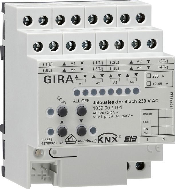 Gira Jalousieaktor KNX REG 8f 1Eing Handbedien Vor Ort-/Handbedienung