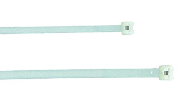 Kabelbinder mit Stahlzunge, aus Polyamid 6.6. Mit antimagnetischer, korrosionsbeständiger Stahlzunge, temperaturbeständig von -40°C bis +85°C, selbstverlöschend gemäß UL 94 V-2, halogenfrei.