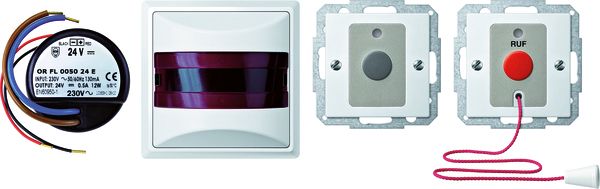 Gruppensignalleuchte, Farbe weiß, mit akustischem und optischem Alarm, ohne Leitungsüberwachung, für zusätzliche Rufanzeige.