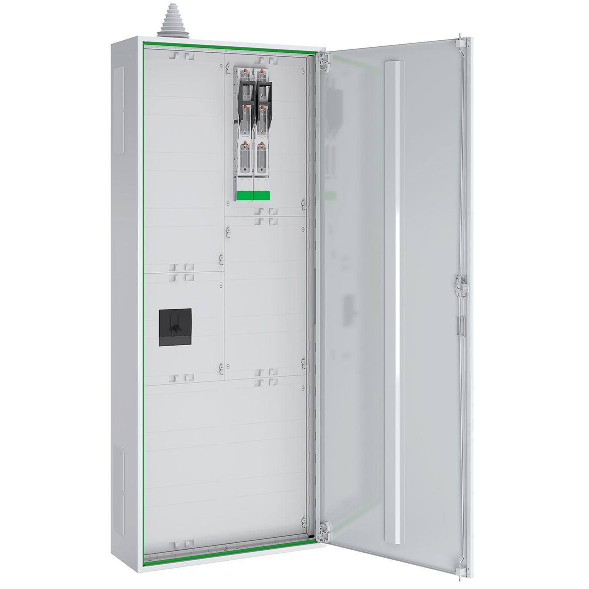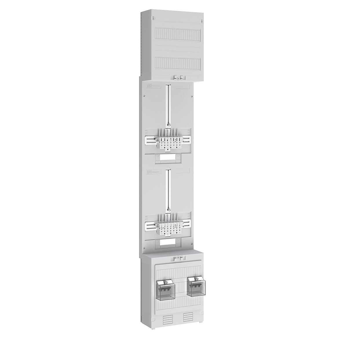 Zählerplatz bestehend aus: 1x 3-Punkt-Befestigung mit 16 mm², 3x Leitungsschutzschalter 1-polig C-Charakteristik 40 A/10 kA inkl, Zählersteckklemme 63 A und 5-poliger Hauptleitungsabzweigklemme, 1x Zählerreserveplatz, NAR mit Sammelschienensystem 5-polig, landesspezifische Ausführung für Luxemburg