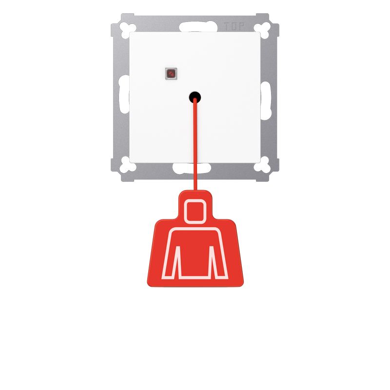 besteht aus Zugtaster, Rufmodul, Abstelltaster und Netzteil (Schraubbefestigung, ohne Befestigungskrallen) komplett mit Rahmen 1fach Das JUNG Notrufsystem dient dem Hilferuf in behindertengerechten WC-Anlagen. Es entspricht den sicherheitstechnischen Anforderungen nach DIN VDE 0834. Das Notrufsystem ist modular aufgebaut. Die folgenden vier Komponenten sind zusammen als komplettes Notrufset erhältlich: ZugtasterÜber eine leicht erreichbare Zugschnur kann im Bad/WC ein Notruf ausgelöst werden. Der Zugtaster kann auch mitten im Raum an der Decke installiert werden, um für hilfsbedürftige Menschen gut erreichbar zu sein. Eine erfolgreiche Rufauslösung wird durch eine rote Beruhigungslampe am Taster signalisiert. RufmodulDas Rufmodul kann z.B. außen neben der WC-Tür oder Flurtür installiert werden. Ein ausgelöster Notruf wird hier optisch durch eine rote LED und akustisch durch einen Summer signalisiert. Beide Signale können wahlweise von Dauerlicht/Dauerton auf Blinklicht/pulsierender Ton umgestellt werden. AbstelltasterIm gleichen Raum, in dem sich der Zugtaster befindet, wird neben der Tür der Abstelltaster installiert. Das helfende Personal kann dort den ausgelösten Ruf abstellen. Netzteil zur Spannungsversorgung des Notrufsystems mit DC 24 V Dienstzimmereinheit, Dienstzimmerterminal und Ruftaster sind separat erhältlich. Die Dienstzimmereinheit kann z.B. in einem Personal- oder Empfangsraum installiert werden. Eine grüne Taste markiert die Anwesenheit, eine gelbe Taste unterdrückt das akustische Notrufsignal des Rufmoduls für 20 Sekunden. Die Komponenten des JUNG Notrufsystems werden mit Rahmen aus den Serien AS / A, CD oder LS ergänzt, so dass ein einheitliches Design im gesamten Gebäude möglich ist. Im kompletten Notrufset sind die Rahmen bereits enthalten. Zur Erweiterung einer Anlage sind die