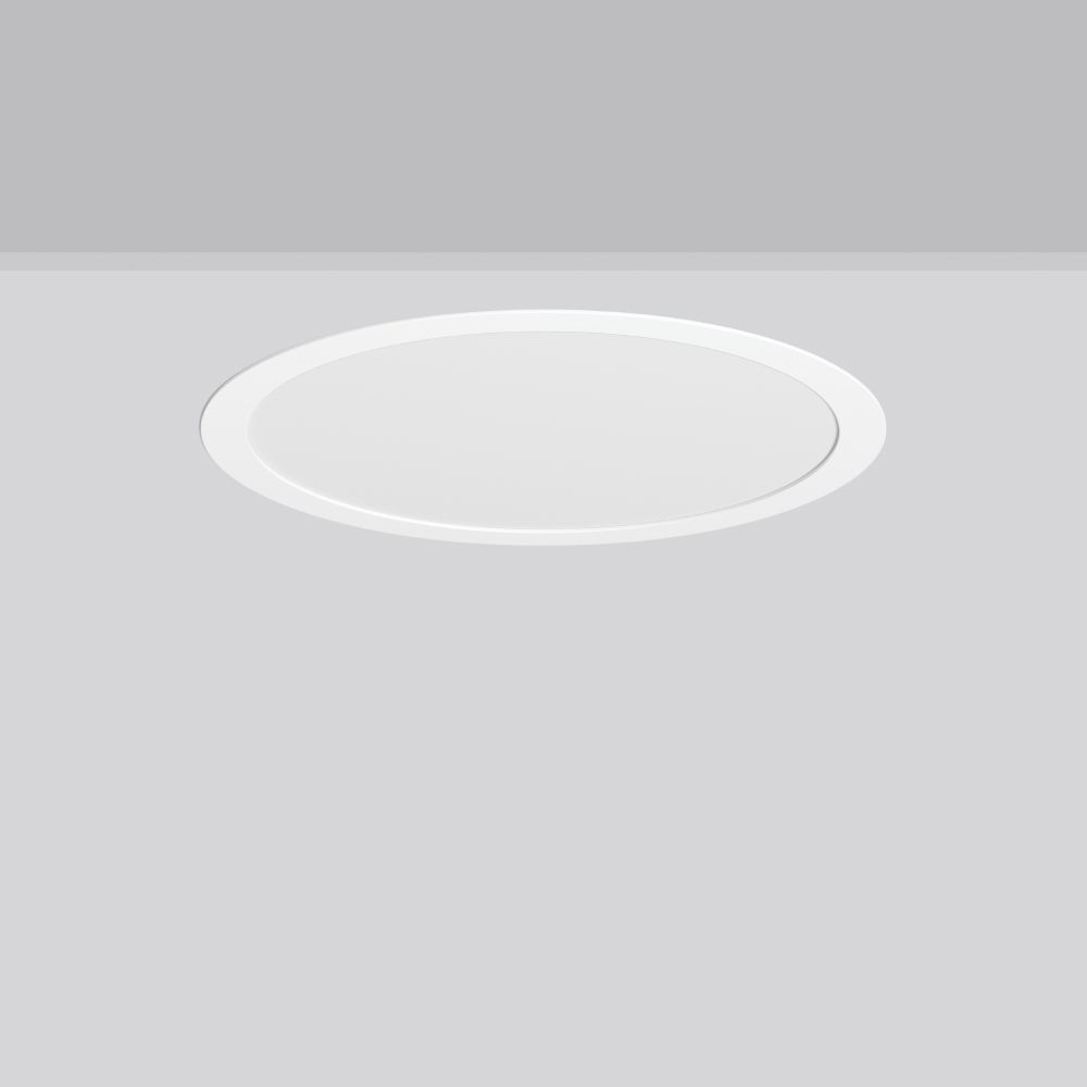 Flexibles rundes Einbau-Downlight mit Multi-Funktionen. Gehäuse Stahlblech pulverbeschichtet. Leuchtenrahmen Aluminium pulverbeschichtet. Lightguide und Diffusor aus vergilbungsfreiem PMMA opal matt. LED Backlight-Technologie für eine homogene Ausleuchtung der gesamten lichtabgebenden Fläche. MultiColour: Farbtemperatur 3000 K oder 4000 K mit Schaltelement individuell einstellbar. Werkseitig auf 4000 K eingestellt. MultiLumen: Einstellbarkeit des Leuchtenlichtstroms in 4 Stufen. Werkseitig auf Stufe 2 voreingestellt. Geeignet für Deckeneinbau. Deckenbefestigung mit Federsystem. Geeignet für direkte Abdeckung mit Wärmedämmungsmaterial (gilt nur für die unteren Lumenstufen). Inklusive Betriebsgerät extern über Steckverbindung, Verbindungsleitung 250 mm. Für Durchgangsverdrahtung mit separat erhältlichem Zubehör geeignet. Durchgangsverdrahtungsbox (5-polig) als Zubehör erhältlich. Anbaugehäuse als Zubehör für
