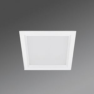 Gehäuse aus Aluminium-Druckguss in Ral 9016 verkehrsweiß lackiert, mit Treiber betriebsfähig verdrahtet, Aluminium-Kühlkörper für effektive Passivkühlung und zurückgesetzter opalen Diffusorscheibe zur Auflockerung der Deckenoptik. Mit Befestigungsfedern für werkzeuglose Montage, geeignet für Deckenstärken von 10mm-20mm. Lichtverteilung direkt breitstrahlend mittels Diffusor opal, mit strukturierter Oberfläche, UGR (4H/8H) 29.4. Integrierter LED Treiber mit Leuchte betriebsfähig verdrahtet. Elektrischer Anschluss über 1,0m lange Anschlussleitung, 2x0,75mm².