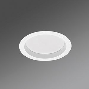 Gehäuse aus Aluminium-Druckguss in Ral 9016 verkehrsweiß lackiert, mit Treiber betriebsfähig verdrahtet, Aluminium-Kühlkörper für effektive Passivkühlung und zurückgesetzter opalen Diffusorscheibe zur Auflockerung der Deckenoptik. Mit Befestigungsfedern für werkzeuglose Montage, geeignet für Deckenstärken von 10mm-20mm. Gehäusefarbe weiß. Lichtverteilung direkt breitstrahlend mittels Diffusor opal, diffus strahlend, mit strukturierter Oberfläche. Integrierter LED Treiber mit Leuchte betriebsfähig verdrahtet. Elektrischer Anschluss über 1,0m lange Anschlussleitung, 2x0,75mm².