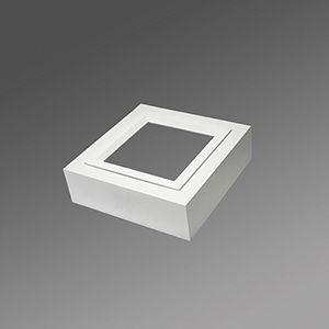Gehäuse aus Aluminium-Druckguss in Ral 9016 verkehrsweiß lackiert, mit Treiber betriebsfähig verdrahtet, Aluminium-Kühlkörper für effektive Passivkühlung und zurückgesetzter opalen Diffusorscheibe zur Auflockerung der Deckenoptik. Mit Befestigungsfedern für werkzeuglose Montage, geeignet für Deckenstärken von 10mm-20mm. Lichtverteilung direkt breitstrahlend mittels Diffusor opal, mit strukturierter Oberfläche, UGR (4H/8H) 27.2. Externer LED-Treiber für direkten Anschluss.