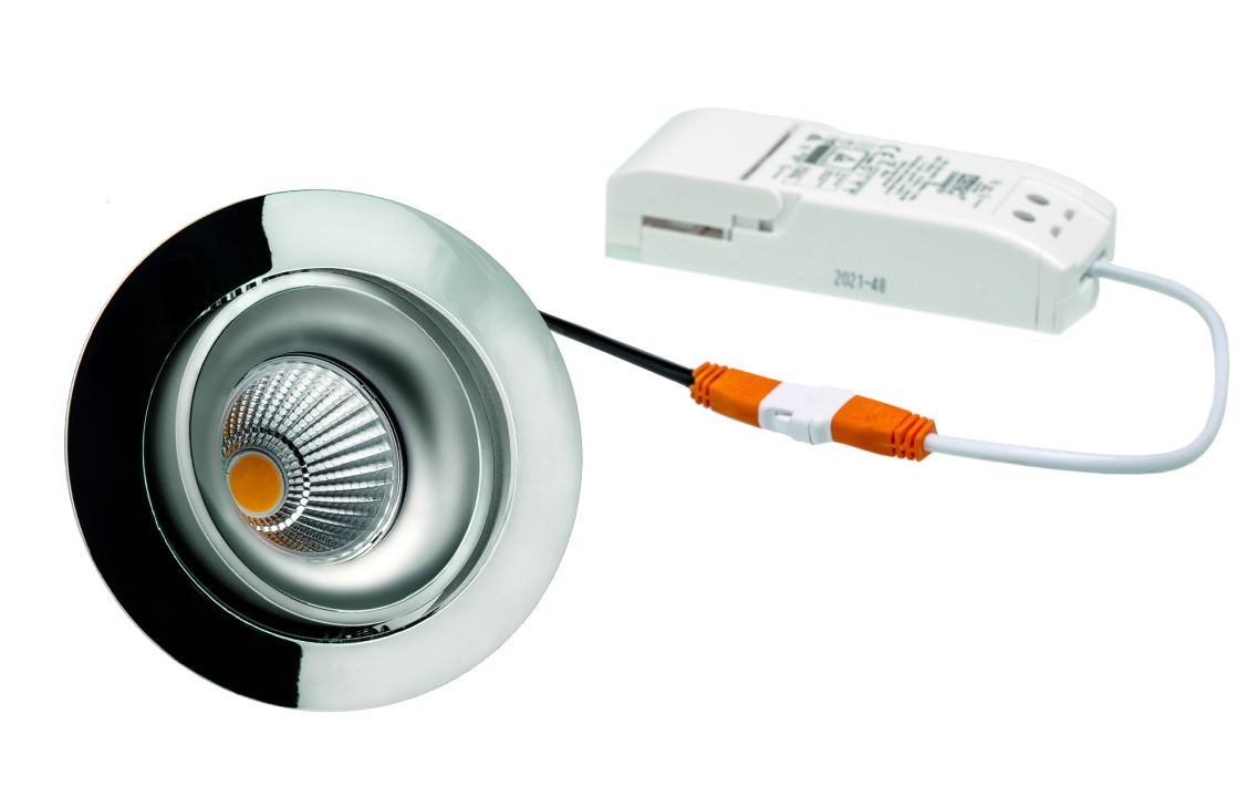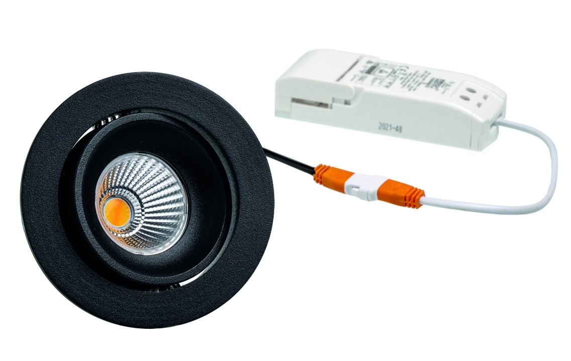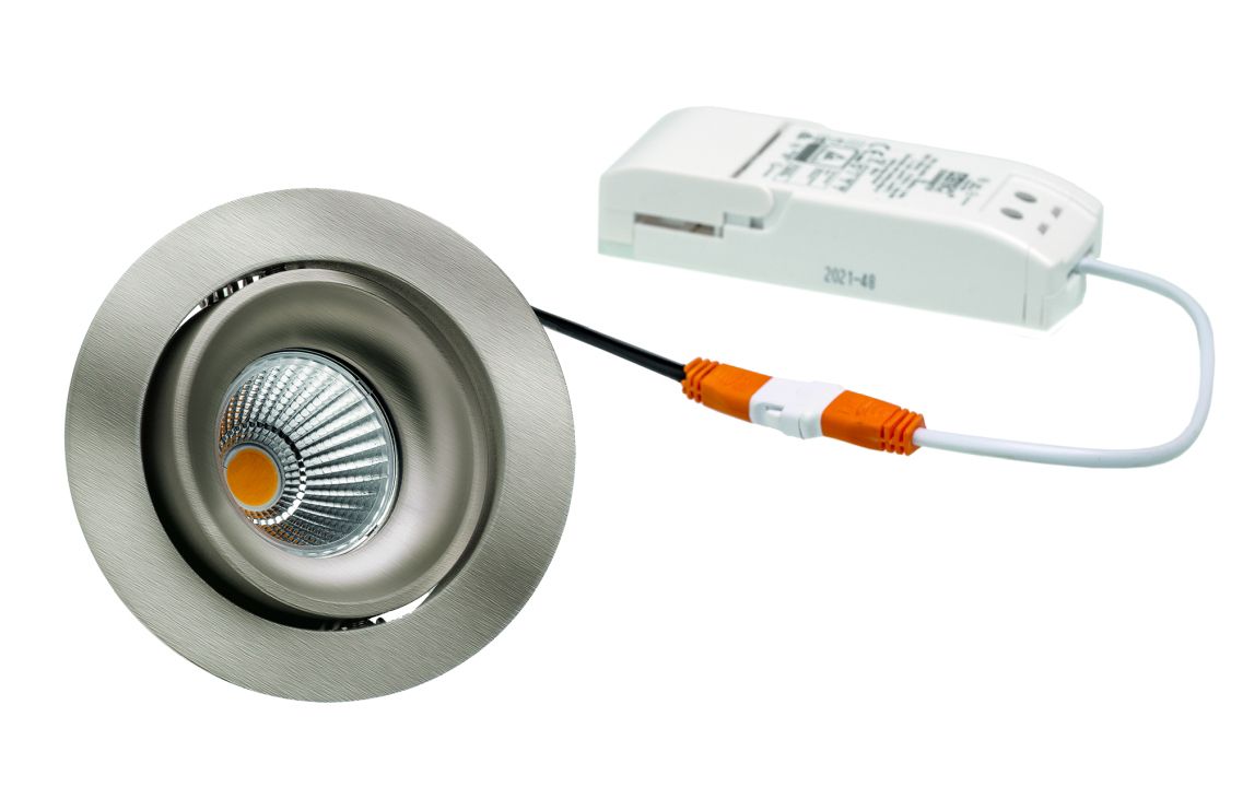 LED-Einbaustrahler-Set für die Einbaumontage in Decken. Das Set inkl. Konverter ist Phasenan- und -abschnitt dimmbar. Die Anschlusstecker ermöglichen einen Plug-and-play-Betrieb und einen werkzeuglosen Deckeneinbau der Leuchte. CRI: 90, Werkstoff des Gehäuses: Aluminium, Abstrahlwinkel: 36°, Verstellbarkeit: schwenkbar, inkl. Betriebsgerät, Maße Konverter: L 109 x B 40 x H 22 mm, Eingangsspannung: 220-240V, 50/60 Hz, Art der Dimmung: Phasenan- und abschnitt, Lebensdauer L80/B10: 36.000h, Anschlussleitung mit Stecker: 450mm.