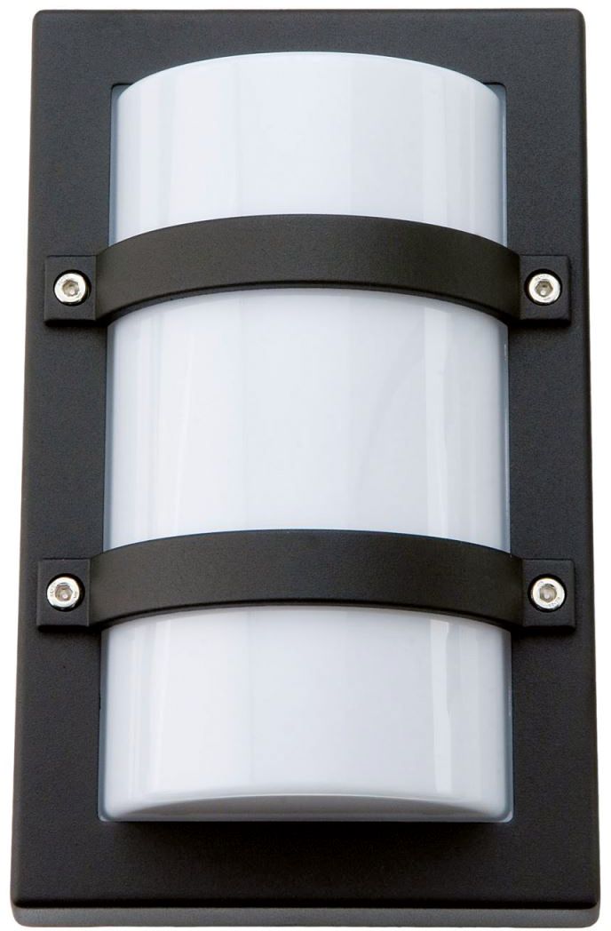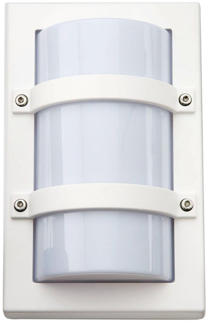 Design: Hallvard Jakobsen. Viereckige Wandleuchte mit zusätzlichem Schutz der Abdeckung. Aus pulverlackiertem Druckgussaluminium. Abdeckung aus UV-beständigem Polycarbonat. Zwei Kabeleinführungen, Möglichkeit für sichtbare oder verborgene Kabelführung, sowie Steckklemmen mit der Möglichkeit zur Durchverdrahtung.
