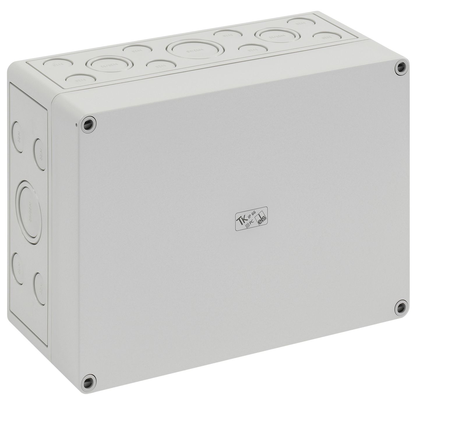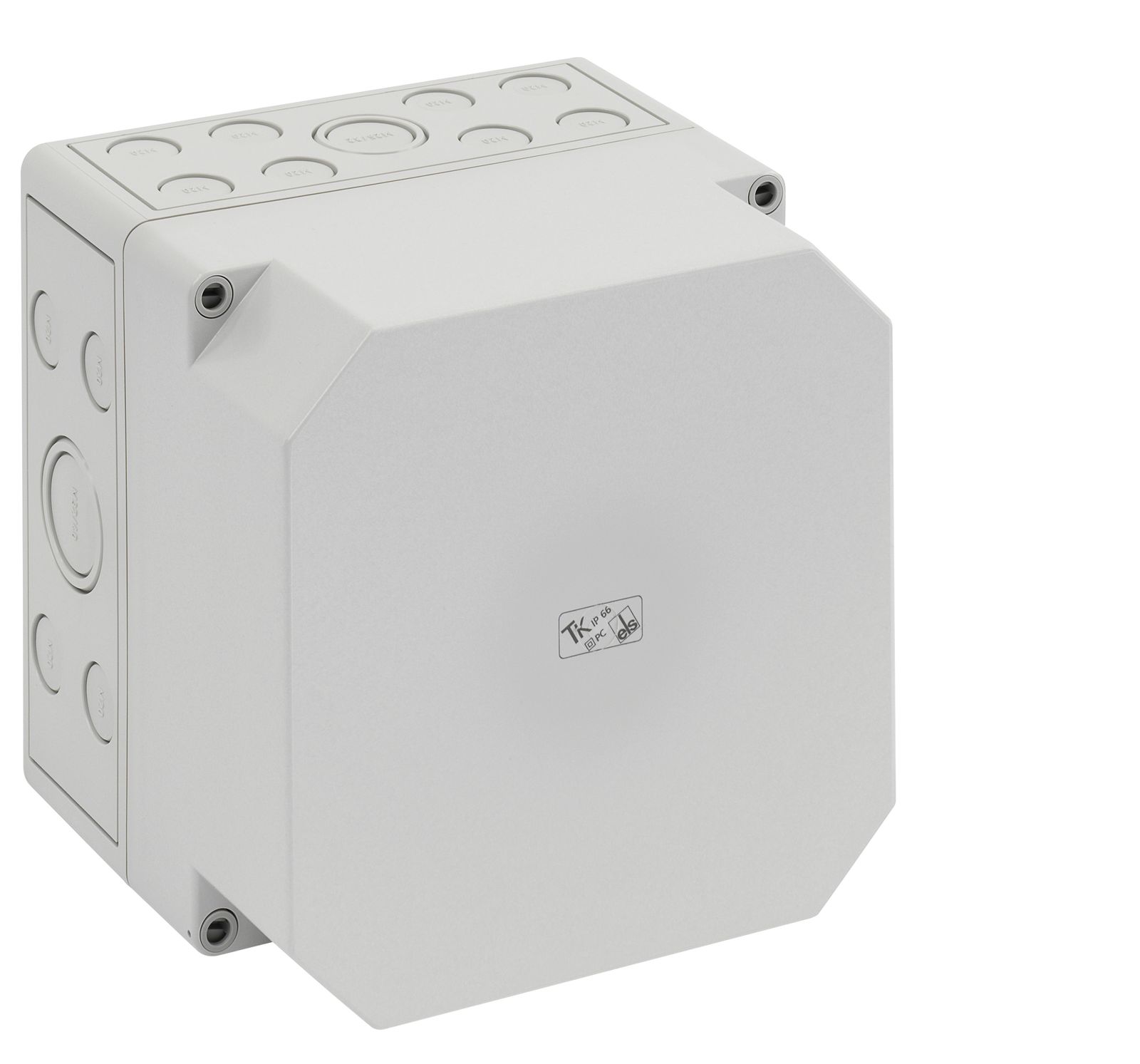 Leergehäuse, mit Schutzart IP66, Polycarbonat, glasfaserverstärkt, zertifiziert durch UL (UL 508 & CSA C22.2 No. 14-13, UL 50 & CSA 22.2 No. 94.1-7 & UL 50E & CSA C22.2 No. 94.2-7), DLG (Ammoniakbeständigkeit), DNV (Klasse: Schiffe & Offshore-Anlagen), Ui=690V AC, Ui=1000V DC, innenliegende Befestigungsstellen, für Installationen im industriellen Umfeld und geschütztem Außenbereich, Kasten: Polycarbonat, glasfaserverstärkt, grau, Deckel: Polycarbonat, glasfaserverstärkt, grau, Ausschlagmembranen, M20/M25/M32, (12 seitlich) Abmessungen: 130 x 130 x 75mm