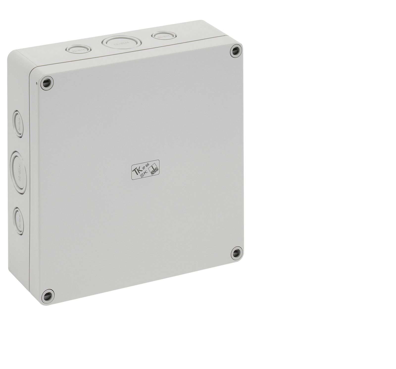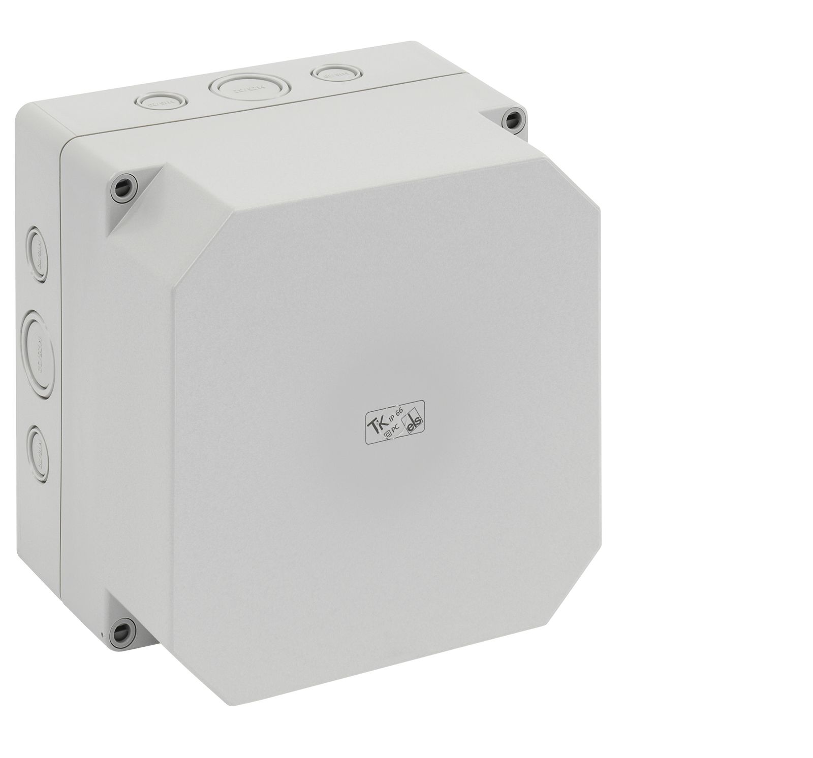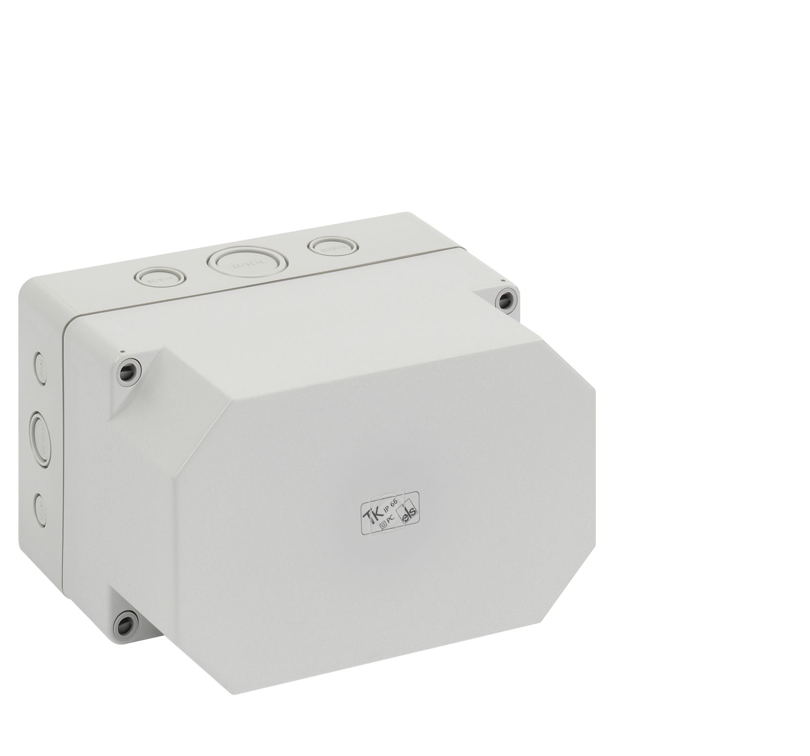 Leergehäuse, mit Schutzart IP66, Polycarbonat, glasfaserverstärkt, zertifiziert durch UL (UL 508 & CSA C22.2 No. 14-13, UL 50 & CSA 22.2 No. 94.1-7 & UL 50E & CSA C22.2 No. 94.2-7), DLG (Ammoniakbeständigkeit), DNV (Klasse: Schiffe & Offshore-Anlagen), Ui=690V AC, Ui=1000V DC, innenliegende Befestigungsstellen, für Installationen im industriellen Umfeld und geschütztem Außenbereich, Kasten: Polycarbonat, glasfaserverstärkt, grau, Deckel: Polycarbonat, glasfaserverstärkt, grau, Ausschlagmembranen, M16/M20, (4 seitlich) Abmessungen: 65 x 65 x 57mm