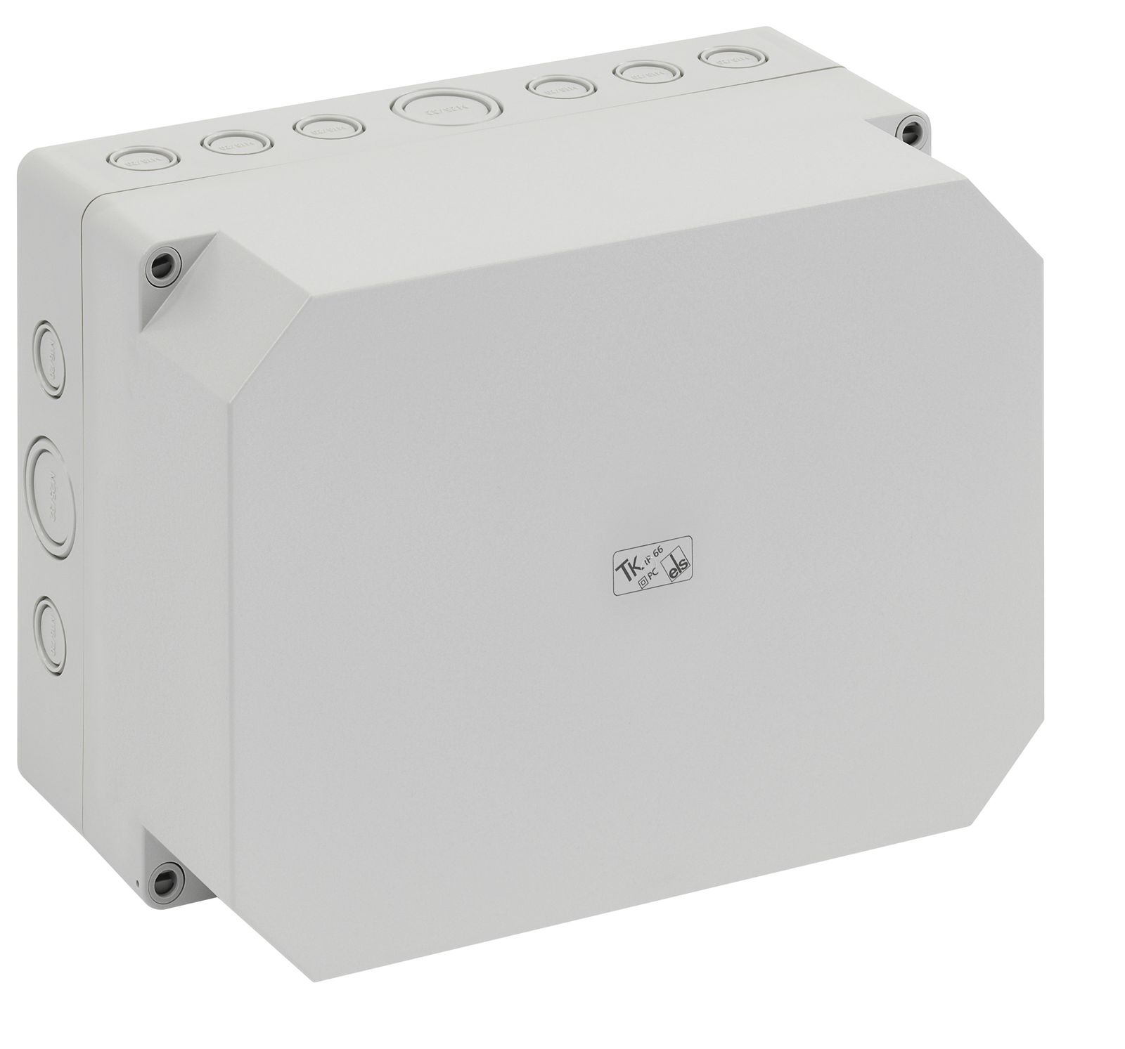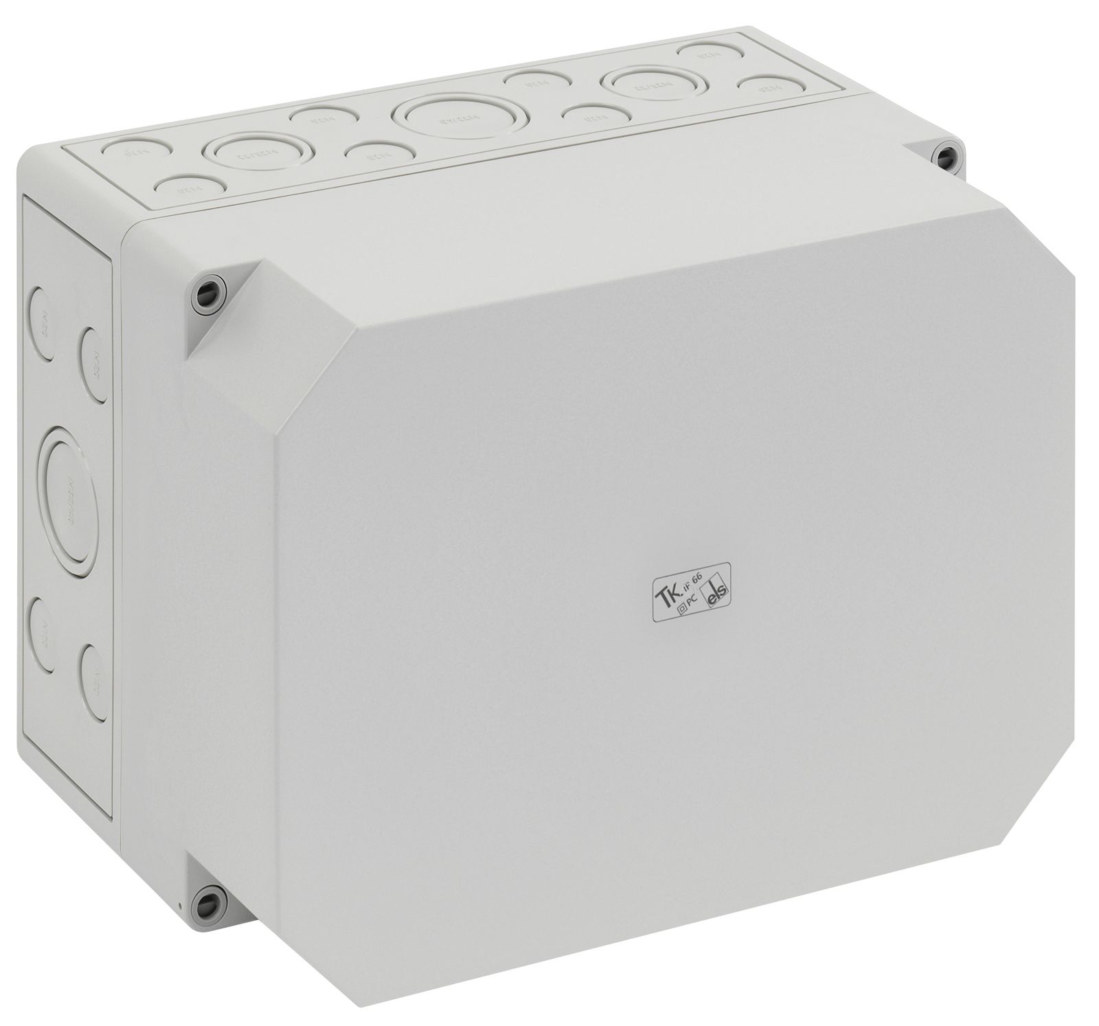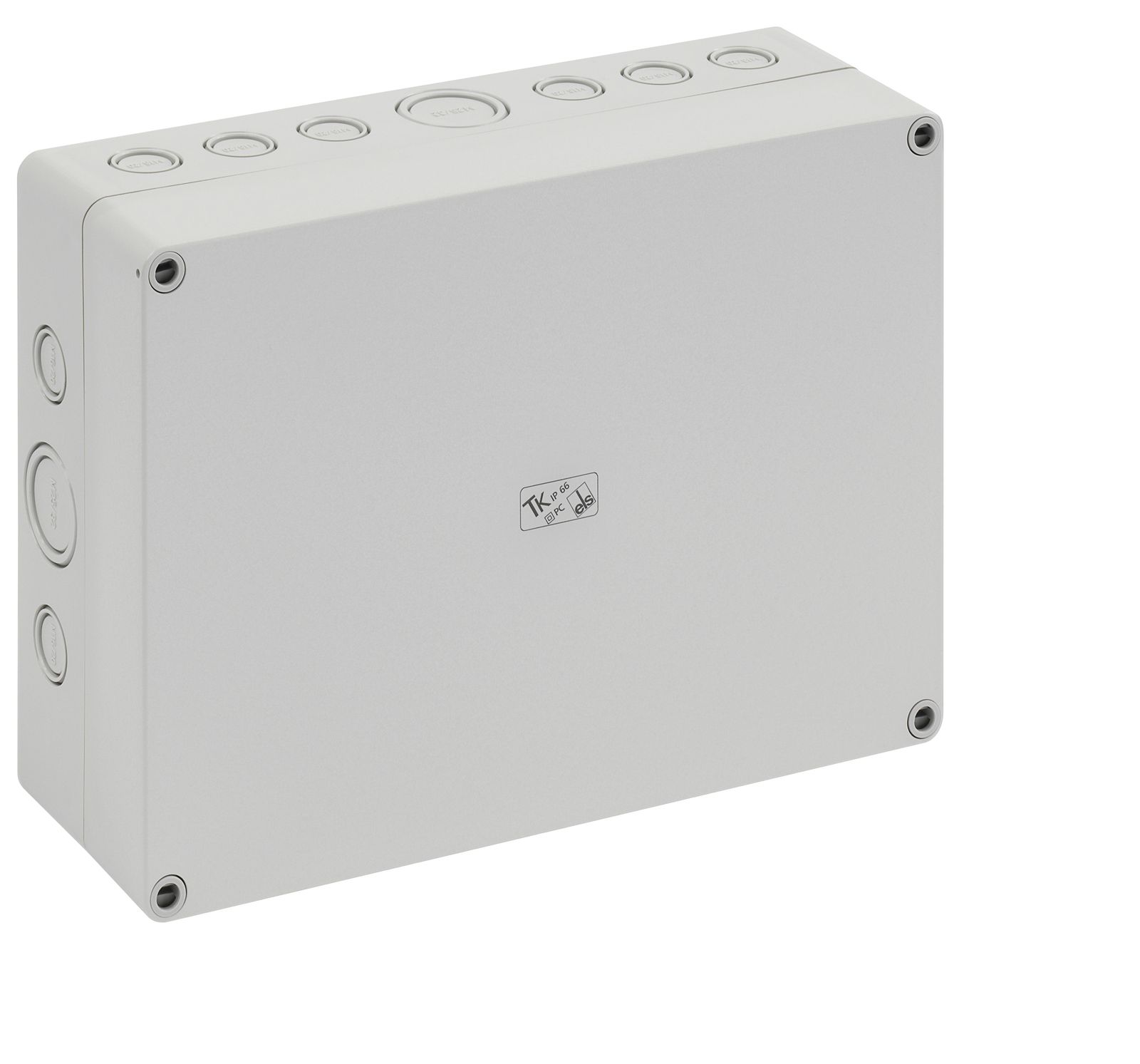 Leergehäuse, mit Schutzart IP66, Polycarbonat, glasfaserverstärkt, zertifiziert durch UL (UL 508 & CSA C22.2 No. 14-13, UL 50 & CSA 22.2 No. 94.1-7 & UL 50E & CSA C22.2 No. 94.2-7), DLG (Ammoniakbeständigkeit), DNV (Klasse: Schiffe & Offshore-Anlagen), Ui=690V AC, Ui=1000V DC, innenliegende Befestigungsstellen, für Installationen im industriellen Umfeld und geschütztem Außenbereich, Kasten: Polycarbonat, glasfaserverstärkt, grau, Deckel: Polycarbonat, glasfaserverstärkt, grau, Ausschlagmembranen, M16/M20, (4 seitlich) Abmessungen: 65 x 65 x 57mm