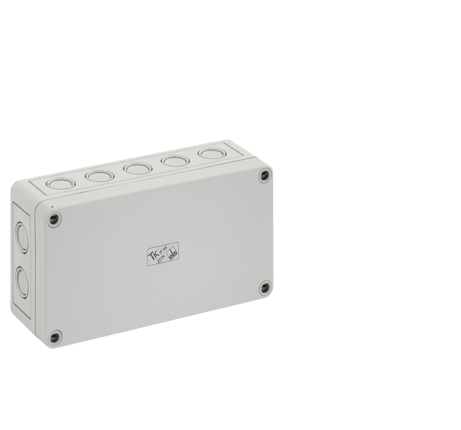 Leergehäuse, mit Schutzart IP66, Polystyrol, Ui=690V AC, Ui=1000V DC, innenliegende Befestigungsstellen, für Standardinstallationen im Innenbereich, Kasten: Polystyrol, grau, Deckel: Polystyrol, grau, Ausschlagmembranen, M16/M20, (10 seitlich) Abmessungen: 130 x 94 x 57mm