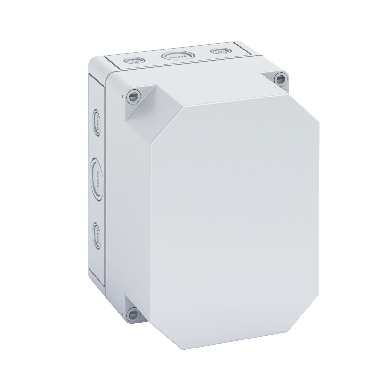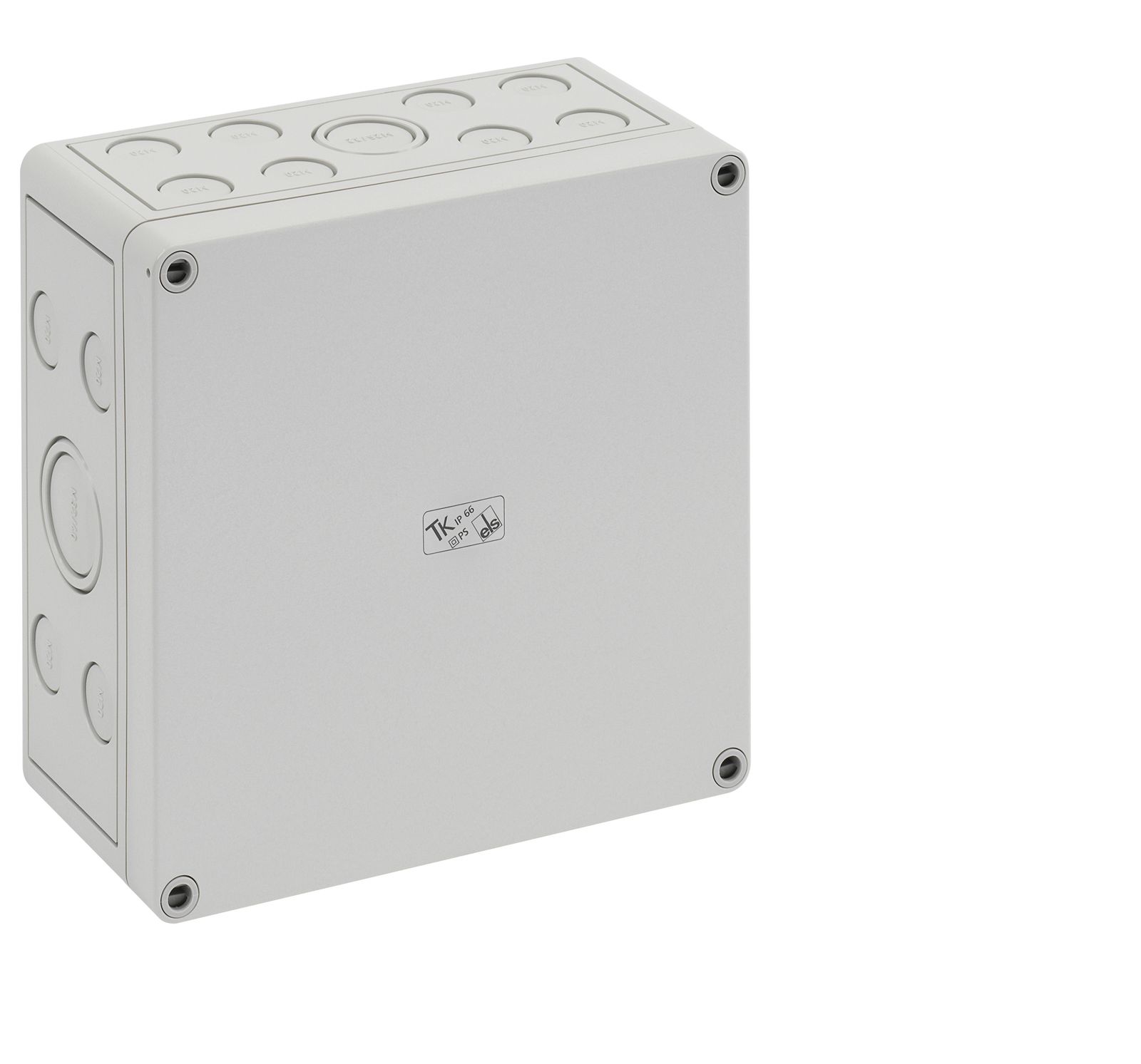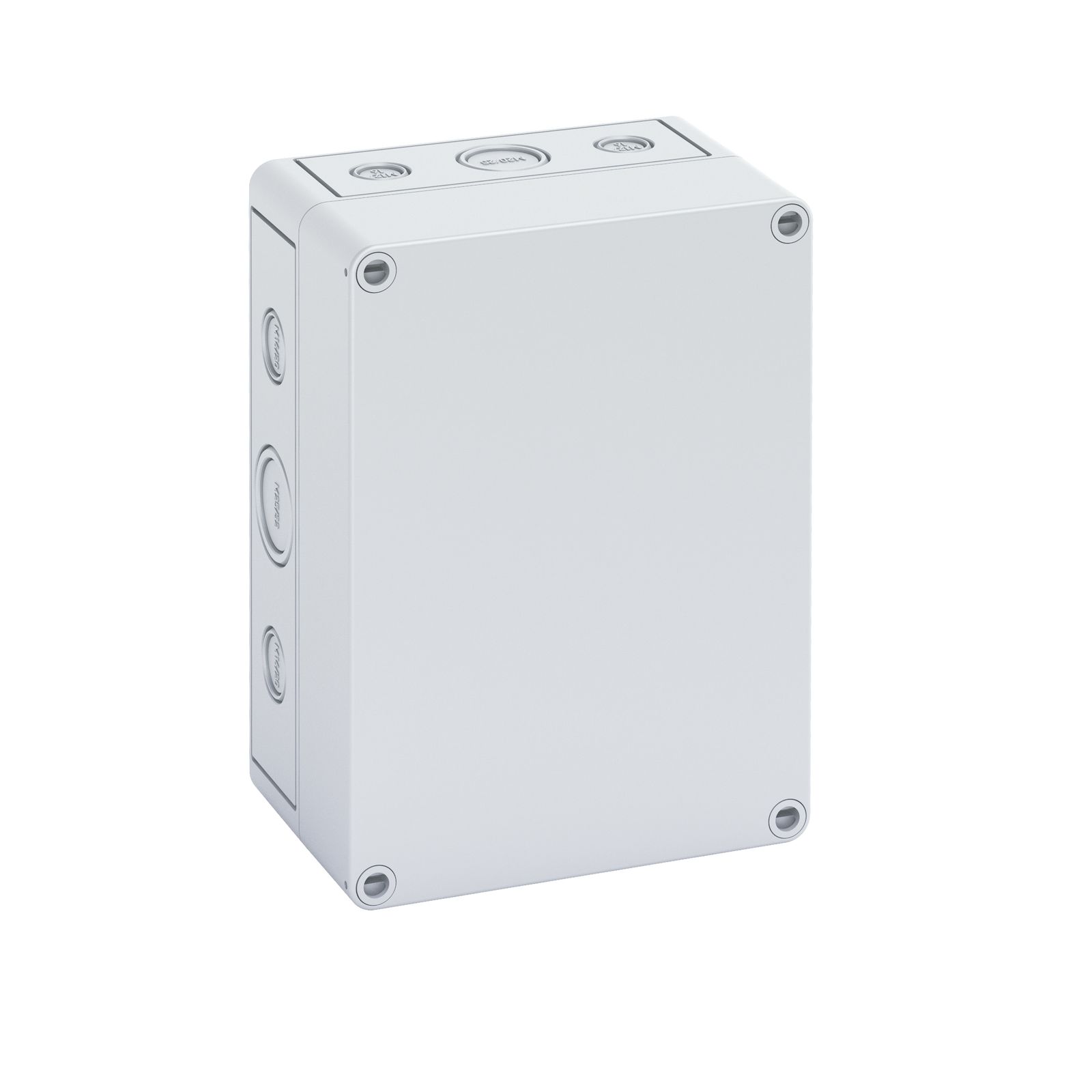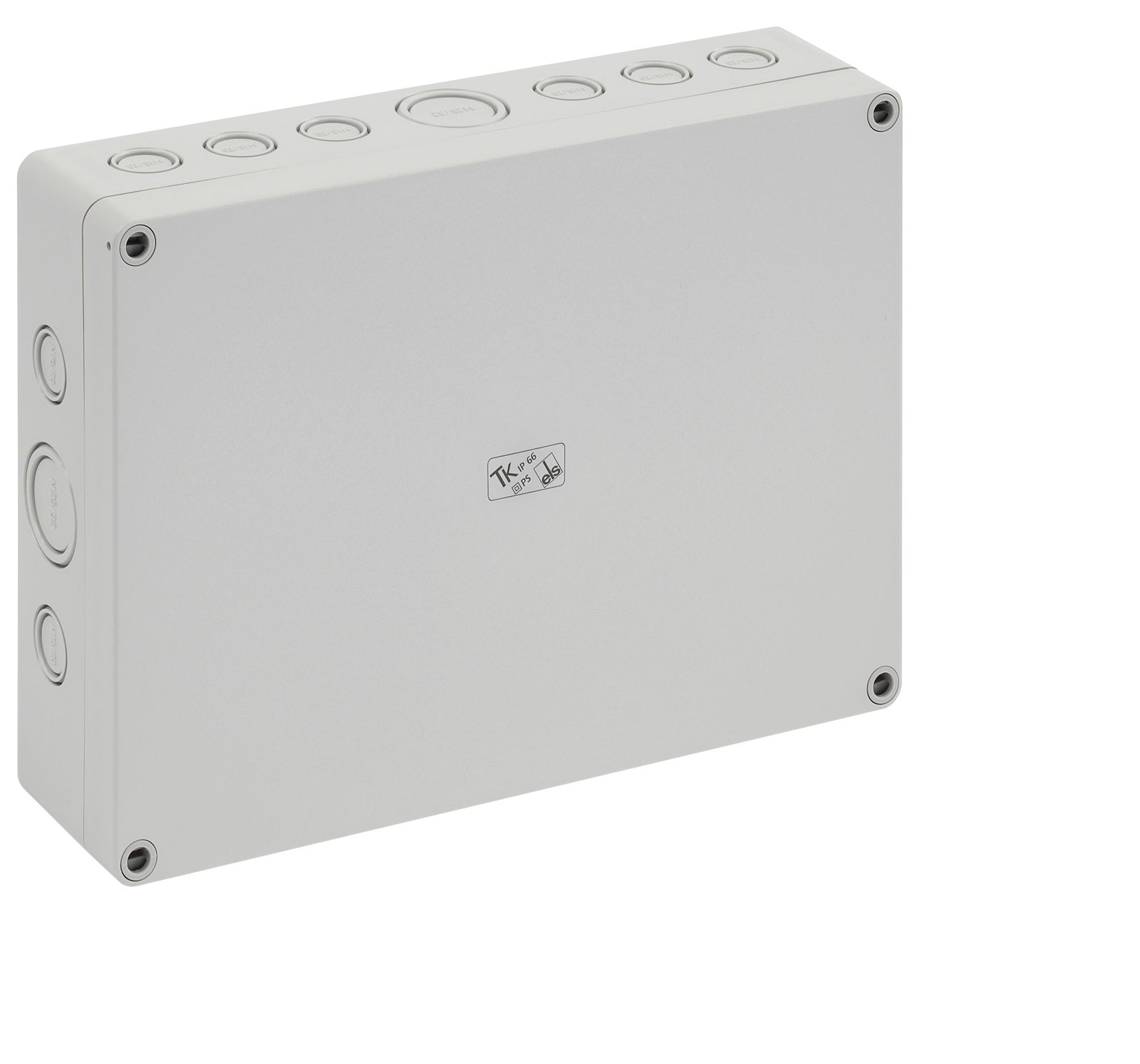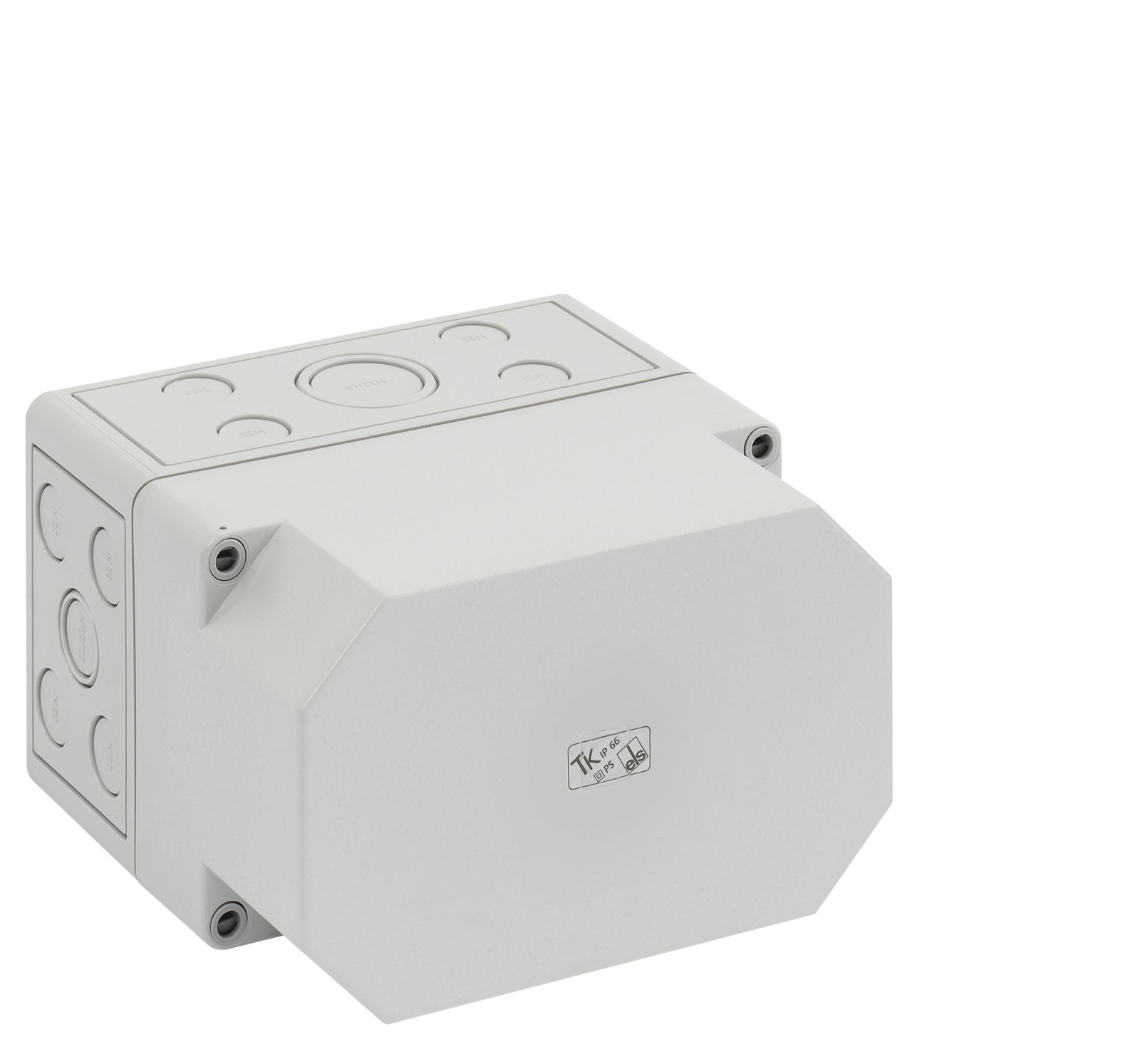Leergehäuse, mit Schutzart IP66, Polystyrol, Ui=690V AC, Ui=1000V DC, innenliegende Befestigungsstellen, für Standardinstallationen im Innenbereich, Kasten: Polystyrol, grau, Deckel: Polystyrol, grau, Ausschlagmembranen, M16/M20, (10 seitlich) Abmessungen: 130 x 94 x 81mm