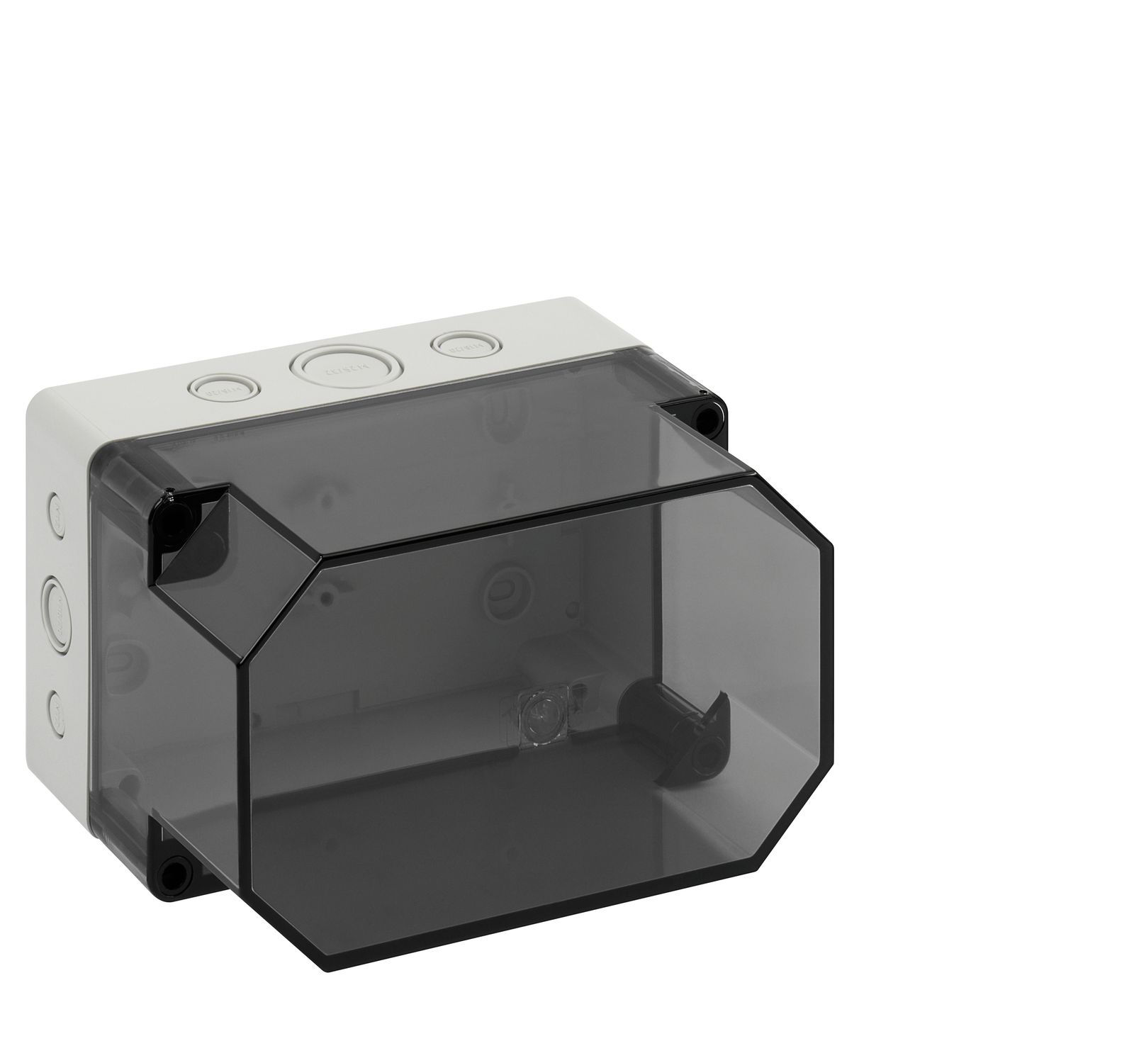 Leergehäuse, mit Schutzart IP66, Polycarbonat, glasfaserverstärkt, zertifiziert durch UL (UL 508 & CSA C22.2 No. 14-13, UL 50 & CSA 22.2 No. 94.1-7 & UL 50E & CSA C22.2 No. 94.2-7), DLG (Ammoniakbeständigkeit), DNV (Klasse: Schiffe & Offshore-Anlagen), Ui=690V AC, Ui=1000V DC, innenliegende Befestigungsstellen, für Installationen im industriellen Umfeld und geschütztem Außenbereich, Kasten: Polycarbonat, glasfaserverstärkt, grau, Deckel: Polycarbonat, transparent, Ausschlagmembranen, M16/M20, (6 seitlich) Abmessungen: 94 x 94 x 81mm