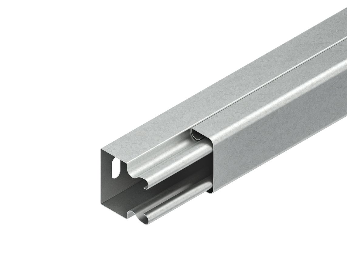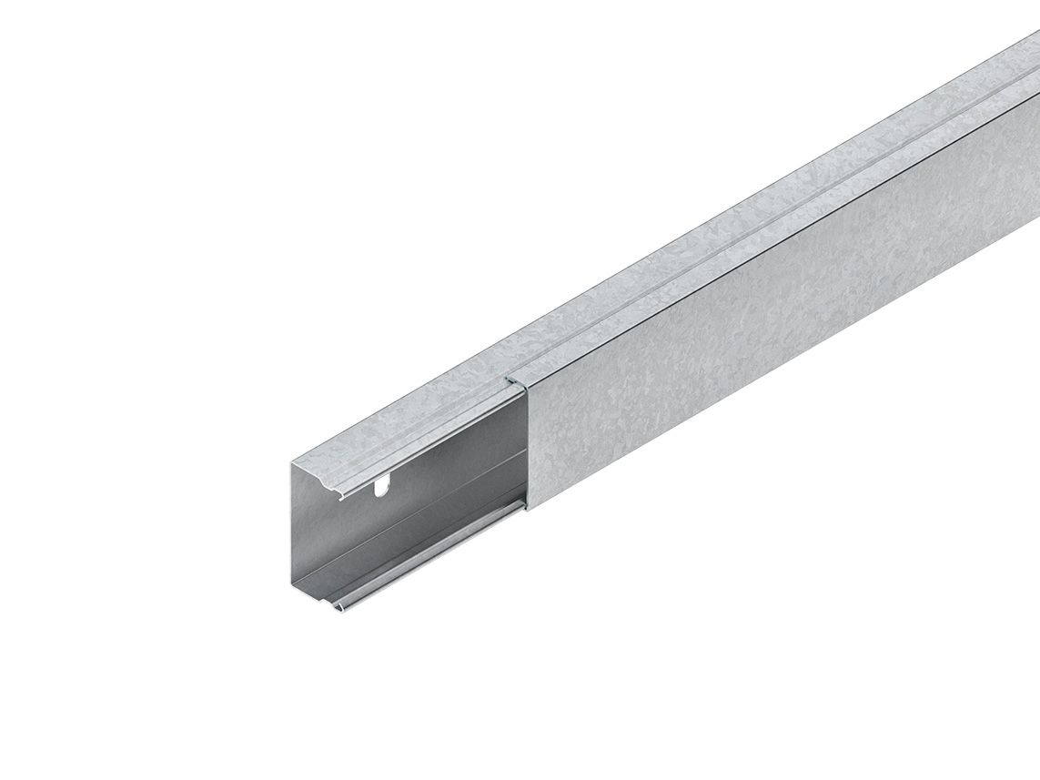 Leitungsschutzkanal, mit aufrastbarem Deckel und einreihiger Befestigungslochung im Kanalboden, der Potentialausgleich der Deckel erfolgt automatisch beim Aufrasten, Zubehör für den Potentialausgleich, zwei Stoßstellenverbinder LST... je Stoßstelle bitte gesondert bestellen. VDE zertifiziert! Abmessungen (ca. Maße) Höhe H x Breite B : 60 x 60 mm einreihige Bodenlochung : 4,2 x 12 und 7 x 15 mm Bodenlochabstand Rastermaß : 250 mm Lieferlänge L : 2000 mm Nutzbarer Querschnitt : 3182 mm² Werkstoff : Stahl, bandverzinkt nach DIN EN 10346