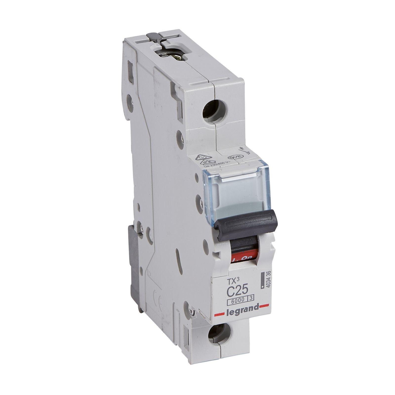 Legrand Leitungsschutzschalter TX3 nach EN 60898-1, VDE 0641-11, EN 60947-2, 1-polig, C-Charakteristik, Bemessungsstrom In 20 A, Bemessungsschaltvermögen Icn 6 kA nach EN 60898-1, Bemessungsspannung Un 230/400 VAC, Bemessungsfrequenz 50/60 Hz, Energiebegrenzungsklasse 3, Befestigung auf Hutprofilschiene EN 60715 durch eine rastende Schnellbefestigung, klare Information vorne auf jedem Gerät, eindeutige Schaltstellungsanzeige rot/grün am Schalthebel, mit Beschriftungsfenster, mit Untersteckschutz zum sicheren Einführen des Leiters in Fahrstuhlklemme, Anbau von Hilfsgeräten möglich. Leitungsschutzschalter mit C-Charakteristik sind für den Leitungsschutz bei Geräten mit hohen Einschaltströmen (z.B. Motoren und Transformatoren) vorgesehen.