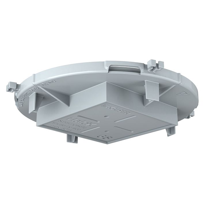 HaloX 100 für Ortbeton (1281-00). Für die Verarbeitung im Ortbeton ist das formstabile HaloX -System modular aufgebaut. Drei Gehäusedurchmesser mit einer Vielzahl an runden, quadratischen sowie universellen Frontteilen ermöglichen die Integration von Leuchten und Lautsprechern bis zu einem Einbaudurchmesser von 250 mm ? auch bei Sichtbeton. Mit Tunnel bietet das System ausreichend Raum für die Aufnahme von Betriebsgeräten, z. B. LED-Treiber. Optionale Verlängerungsringe dienen der Vergrößerung der Einbautiefe. Alle Frontteile sind feuchtigkeitsabweisend und können bereits vor dem Verlegen der ersten Bewehrung exakt positioniert und aufgenagelt werden. Gehäuse und Frontteile werden kraftschlüssig und stabil miteinander verrastet und lassen sich auch nachträglich noch frei ausrichten. Durch die werkzeuglose Öffnungstechnik mit Kombinationseinführung M20/M25 können Rohre einfach und schnell eingeführt werden und selbst bei Fehlbelegung lässt sich die Einführung einfach wieder verschließen. Sie bietet eine sichere Rohrrückhaltung mit Tiefenanschlag, so dass ein nachträgliches innenseitiges Kürzen der Rohre entfällt. Nach dem Vergießen lassen sich Frontteile mit definiertem Einbaudurchmesser durch einen gezielten Hammerschlag öffnen. Die Frontteile für universelle Öffnungsmaße können flächig an- oder überspachtelt werden. Anschließend erfolgt die Erstellung der gewünschten Installationsöffnung mit herkömmlichen Fräswerkzeugen, z. B. MULTI 4000. Installationsart: Ortbeton | Max. Einbautiefe Leuchte / Lautsprecher: 110 mm | Tiefe inkl. Frontteil: 120 mm | Betriebsgeräte Zusatzraum: Ohne Zusatzraum | Einbaudurchmesser Leuchte /