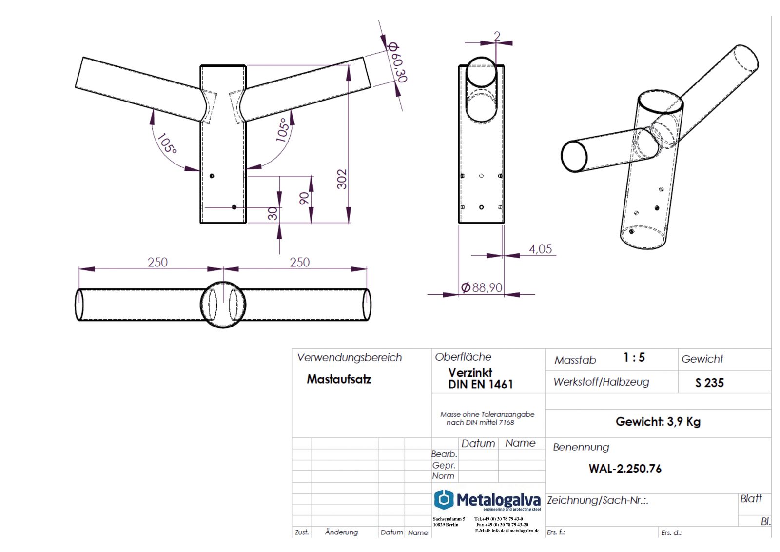 Lichtmast 8m Ø76mm ST vz| Auslegerlänge | 0 mm |