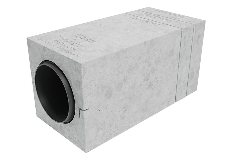 Hochwärmegedämmter Mauerblock zur Aufnahme von Wandhülsen DN 160. Ersetzt im Neubau die Kernbohrung. Als optionales Zubehör zur Aufnahme der Rohbauhülse PP 45 RHK bzw. PP 45 RHL und von Außenluftdurchlässen in DN 160. Die Bautiefe von 365 mm ist durch integrierte Schneidmarkierungen auf 300 mm oder 240 mm kürzbar. Mit weiteren Mauerblöcken PP 45 MB beliebig verlängerbar. Brandschutzklasse B1.Artikel: PP 45 MB, Einbauort: Außenwand, Material: Kunststoff EPP, Farbe: schwarz, Gewicht: 0,67 kg, Gewicht mit Verpackung: 0,71 kg, Brandschutz: Brandschutzklasse B1, Nennweite: 180 mm, Breite: 248 mm, Höhe: 248 mm, Tiefe: 365 mm, Breite mit Verpackung: 255 mm, Höhe mit Verpackung:
