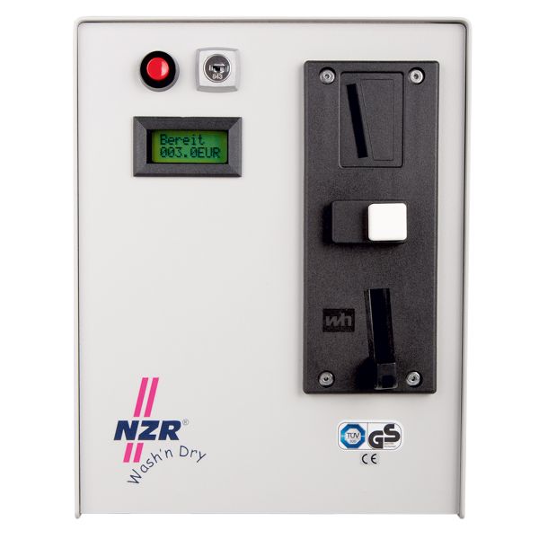 Der Zeitmünzzähler ZMZ 0215 Wash´n Dry mit elektronischem Mehrfachmünzprüfer (nur in Verbindung mit Option O Artikelnummer 3151 bestellbar) ist kundenseitig einstellbar. Es können die Freigabezeit und die Anzahl der Münzen eingestellt werden. Nach Einwurf einer Münze erscheint im Display die freigegebene Zeit. Gleichzeitig schaltet das Hauptrelais ein. Der Zeitvorrat wird in Sekundenschritten reduziert. Durch den Einwurf von weiteren Münzen wird die Zeitvorgabe entsprechend addiert. Aufgrund der bereits werkseitigen Konfiguration mit integriertem Schaltschütz, Türentriegelungstaste und internem Zählwerk sind diese Geräte ideal auf den Einsatz bei Waschmaschinen und Wäschetrocknern abgestimmt. Aufbau mit moderner Mikroprozessortechnik, elektronischem Mehrfachmünzprüfer, Falschgeldrückgabe, Einwurf wahlweise 0,10 ?, 0,20 ?, 0,50 ?, 1,00 ?, 2,00 ? oder Wertmarke, die Grundzeit ist einstellbar auf einen maximalen Zeitvorrat von 99 h 59 min 59 sek., die kleinste einzustellende Zeiteinheit beträgt 1 Sekunde, das Gerät nimmt beliebig viele Münzen an bis der maximale Zeitvorrat erreicht ist, einfache Zeiteinstellung durch logische Menüführung, 2-zeiliges LC-Display zur Anzeige der Restlaufzeit, der Münzvorwahl sowie der Münzsorte, Aufnahmemenge Münzbehälter: 80 Stück EUR 0,50, einfacher Anschluss durch 5-polige Steckverbindung, pulverbeschichtetes Edelstahlgehäuse (RAL 7035 lichtgrau) mit Zylindersicherheitsschloss, zwei 6-stellige interne Münzenzählwerke, eines nicht rückstellbar zur Abrechnungskontrolle, Türentriegelung: einmaliger Nachlauf von 1 Minute auf Knopfdruck, Schütz für 3-phasige Abschaltung 3 x 20 A, Versorgung (U) 1x230V, Leistungsaufnahme 4 Watt, Schaltstrom (I) 3x 20 A (AC1), Ausgangsrelais 3x Schließer, Gewicht 3,0 kg, Abmessungen (B x H x T) 185 x 238 x
