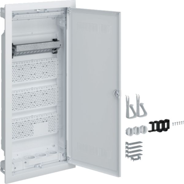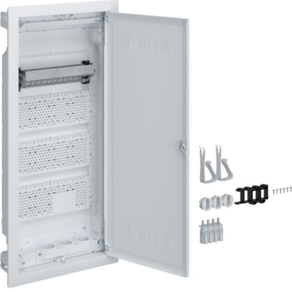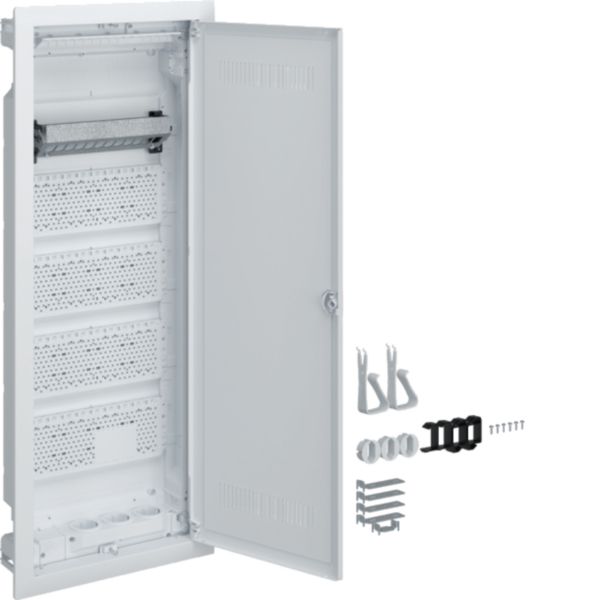 Der vierreihige, stabile und zuverlässige Aufputz-Multimedia-Kleinverteiler VA48WWH mit Schlitztür mit Kunststoffeinsatz bietet Schutzart IP30 und ist für den Wohngebäudebereich nach DIN 18015 und für die Installation von schutzisolierten VDI-Komponenten geeignet. Der Multimedia-Kleinverteiler AP nimmt bis zu 48 Baugruppen auf und ist die perfekte Lösung für den Elektroinstallateur in bewährter Hager-Qualität, die begeistert.