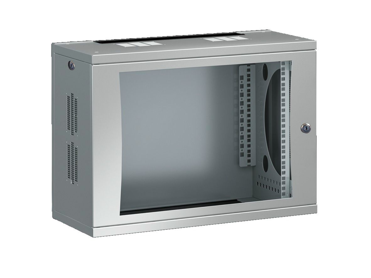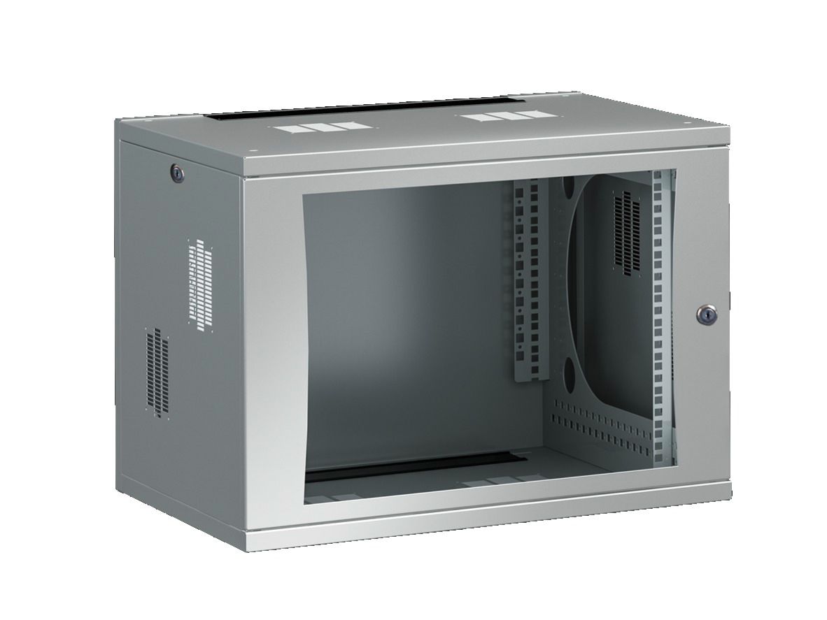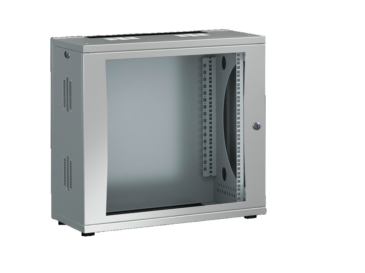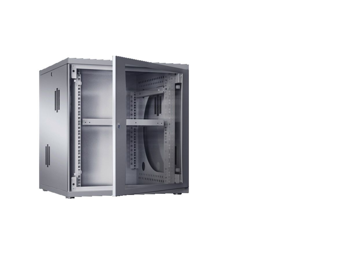 DK FlatBox, Wand-/Standgehäuse in FlatPack-Verpackung, mit 482,6 mm (19)-Montagerahmen, 12 HE, BHT: 600x625x600 mm