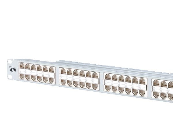 19 Zoll 1HE Cat.3 Patchfeld mit 50 RJ45-Buchsen 8(4), 19 Zoll Modulträger aus silber eloxiertem Aluminium, Anschluss der ein- bis vierpaarigen Leitungen an LSA-PLUS Schneidklemmen (AWG 22-26), Geeignet für Durchmesser von 0,4 bis 0,6 mm, anschließbare Kabeltypen bei 50 x 8(4): 10 x 10 DA, 4 x 25 DA, 2 x 50 DA (DA=Doppeladern), Beschaltung nach ISO/IEC 11801/EN 50173-1, Die Adernpaare können ohne Aufdrehen der Verseilung bis zur Klemme geführt werden., Zugentlastung mittels Kabelbinder (nicht im Lieferumfang) auf rückseitiger Kabelabfangung, Kabelführungskanal zur geordneten Verlegung der Doppeladern, 5 x Klemmblech für Beidraht, Erdungsbolzen M6