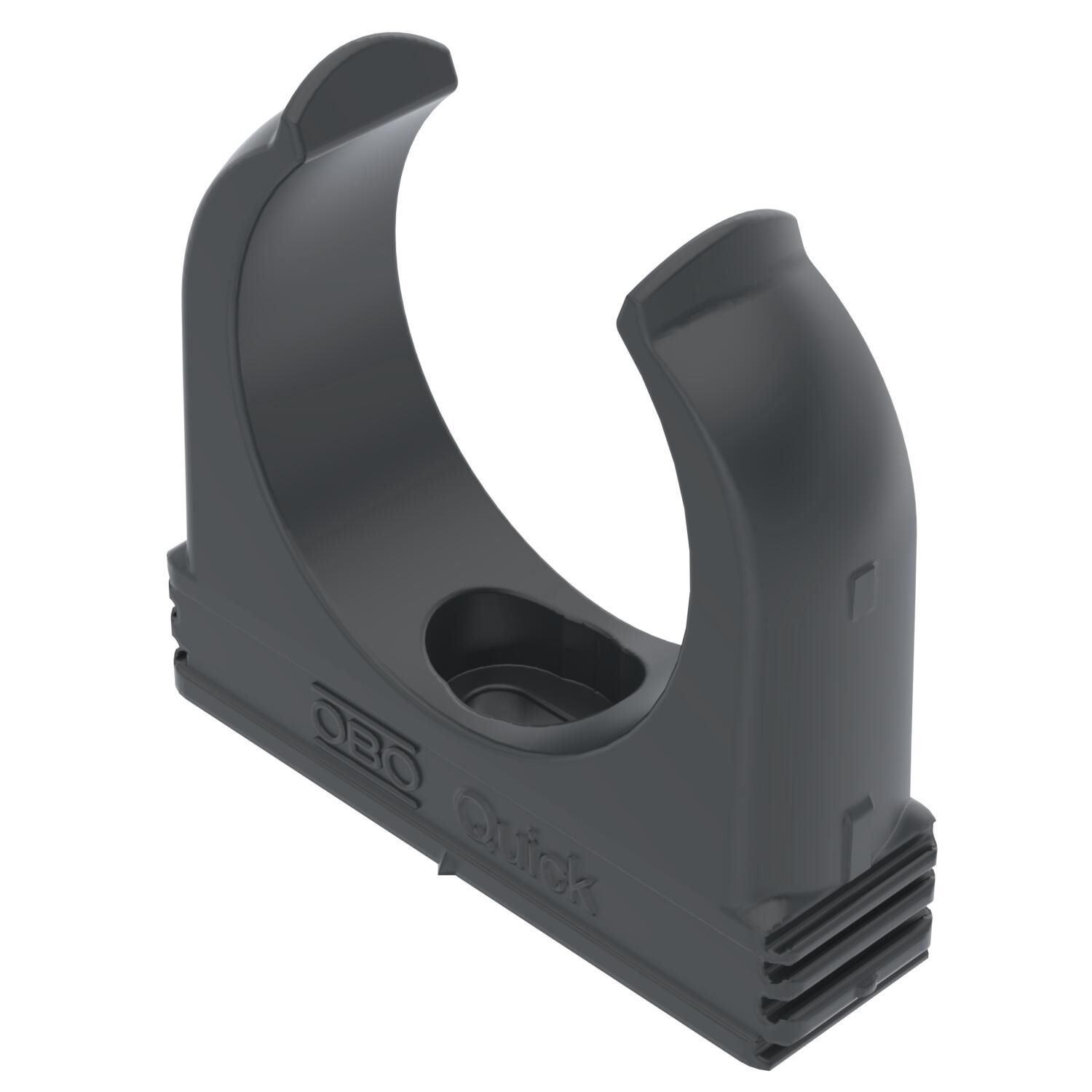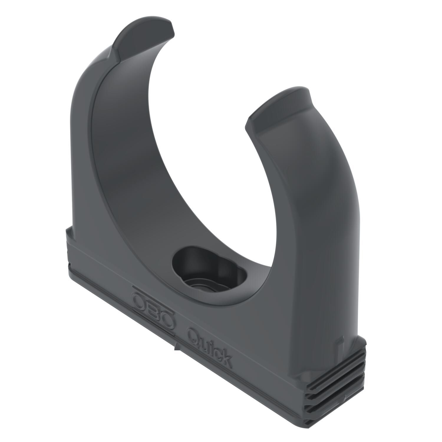Aufputzschelle zur Aufnahme von metrischen Stahlpanzerrohren, leichten und schweren Isolierrohren sowie Elektroinstallationsrohr Quick-Pipe. Universelle Befestigungsmöglichkeiten an Wand und Decke im Innen- und geschützten Außenbereich. Mit Langloch zum seitlichen Ausrichten bei Montage mit Holzschraube oder Schlagdübel. Werkzeuglose Rohrmontage. Aneinander reihbar auch mit OBO Multi-Quick- oder proQuick-Schelle. Größe M16 - M32 kann auf Gewinde M6 geschraubt werden. Befestigungsabstand 50 - 60 cm, max. Auszugswerte F bei 20° C Raumtemperatur siehe Tabelle.