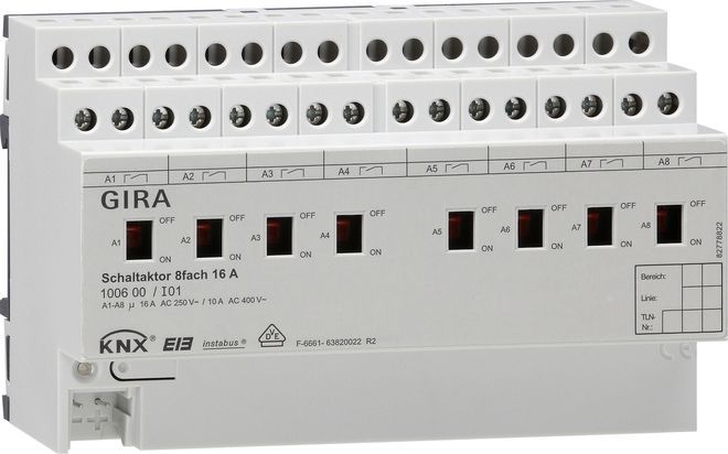 Gira Schaltaktor KNX REG 4TE 4f 16A 3600W 230-400V Vor Ort-/Handbedienung