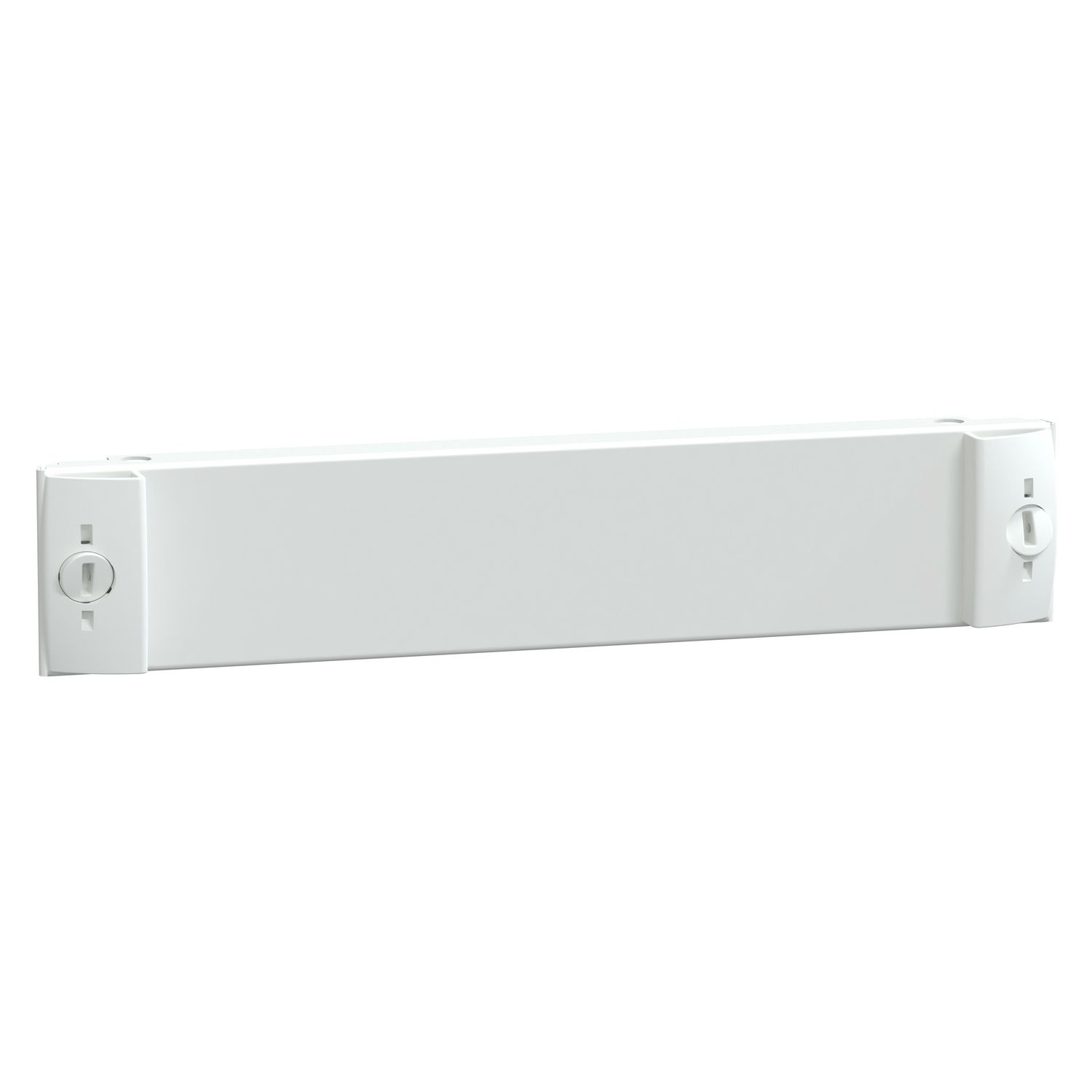 PrismaSeT P. Frontplatte ohne Ausschnitt, mit einer Höhe von 9 Moduleinheiten für Schaltschränke mit einer Breite von 400 mm. Pulverbeschichtet in RAL9003 struktur.