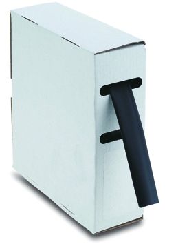 In Papp-Spendeboxen, Schrumpfrate 3:1, Temperaturbereich: -55°C bis +125°C, Material: homogenes Polyolefin, thermisch stabilisiert, strahlungsvernetzt, mittelwandig, flexibel, halogenfrei.