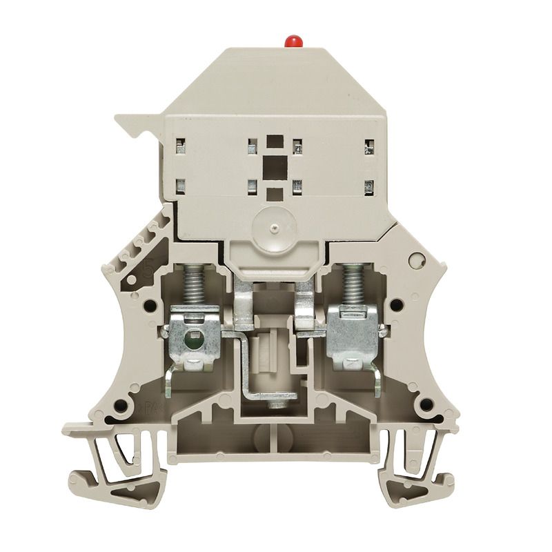 Reihenklemme zum Anschließen oder Verbinden von Schutzleitern mit der Befestigungsgrundlage (Erde). Gehärteter Stahl hält den mechanischen Kräften stand, Zinn-beschichtetes Kupfer sorgt für beste Leitfähigkeit.