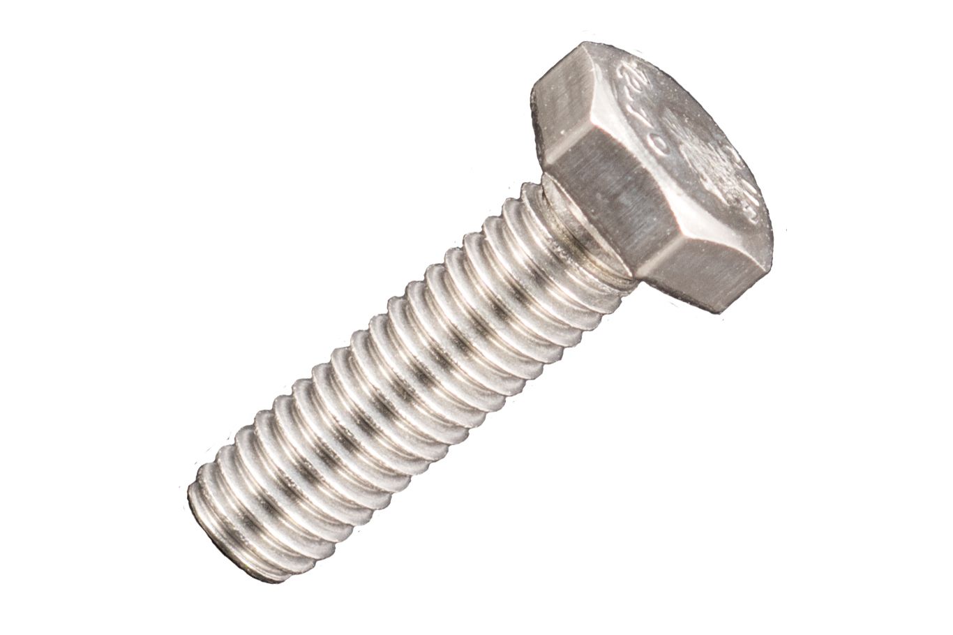 Maschinenschraube, Sechskantkopf, durchgehendes Gewinde, Edelstahl A2 -70 (1.4301) mit Stempelung nach AD-W2, DIN 933. In Kombination mit Unterlegscheiben, Zahnscheiben und / oder metrischen Muttern verwendbar.